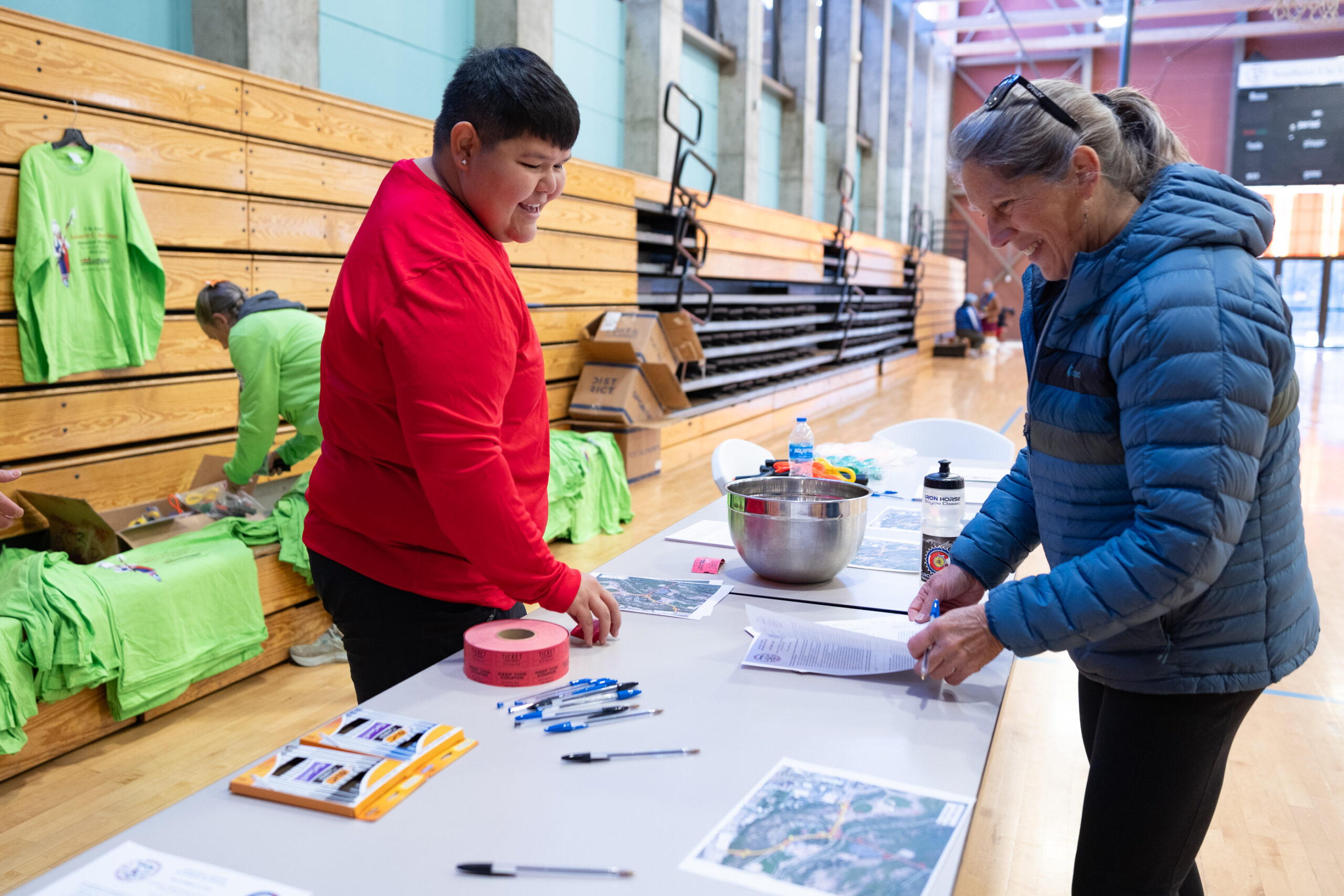 SunUte Recreation Manager, Kelsey Frost helps sign up participants ahead of the 11th annual Leonard C. Burch Walk-Run.