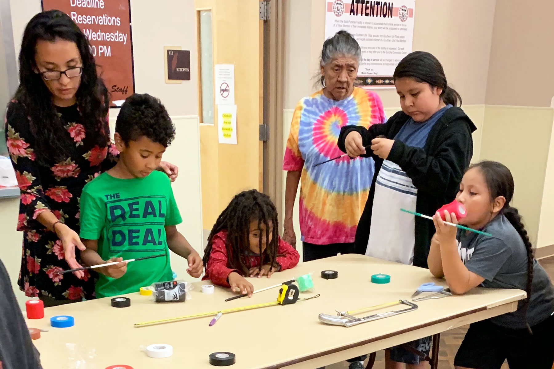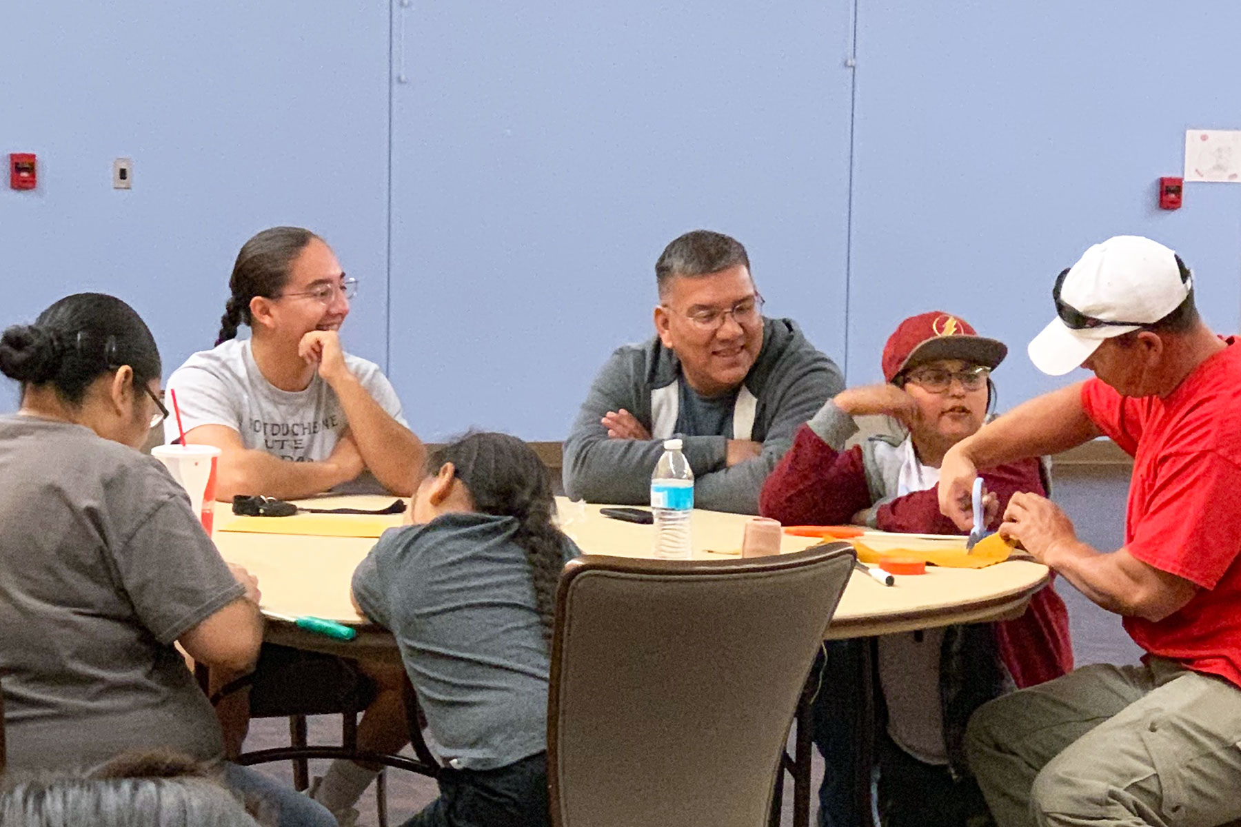 The Eagle Wing Drum Group makes their own drum sticks at the Multi-Purpose Facility, Wednesday, Sept. 2.