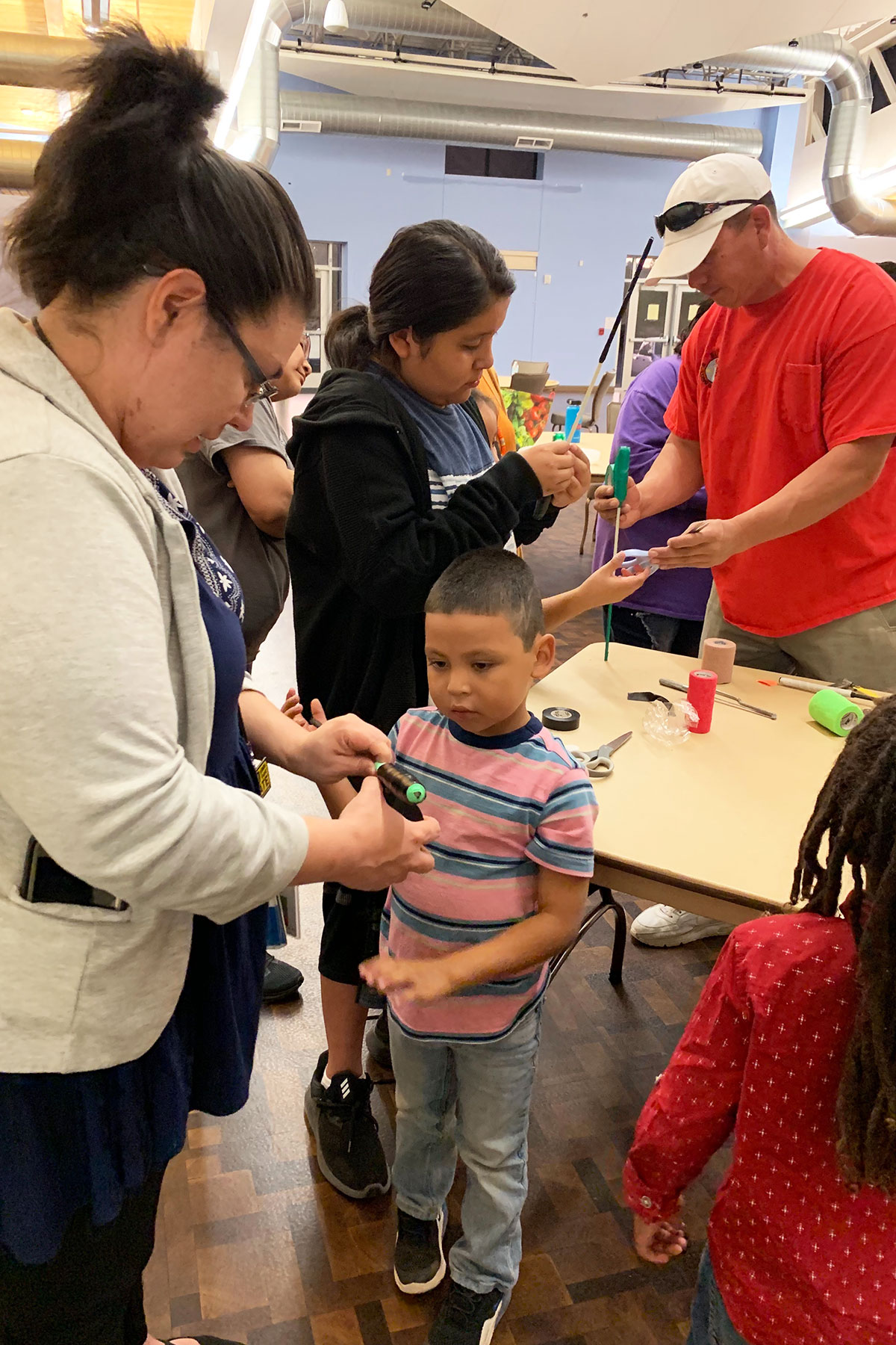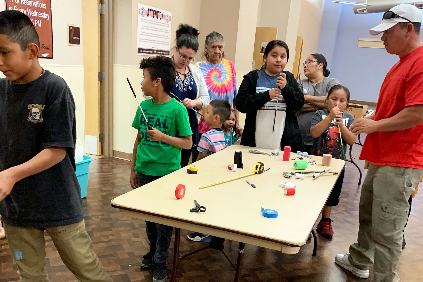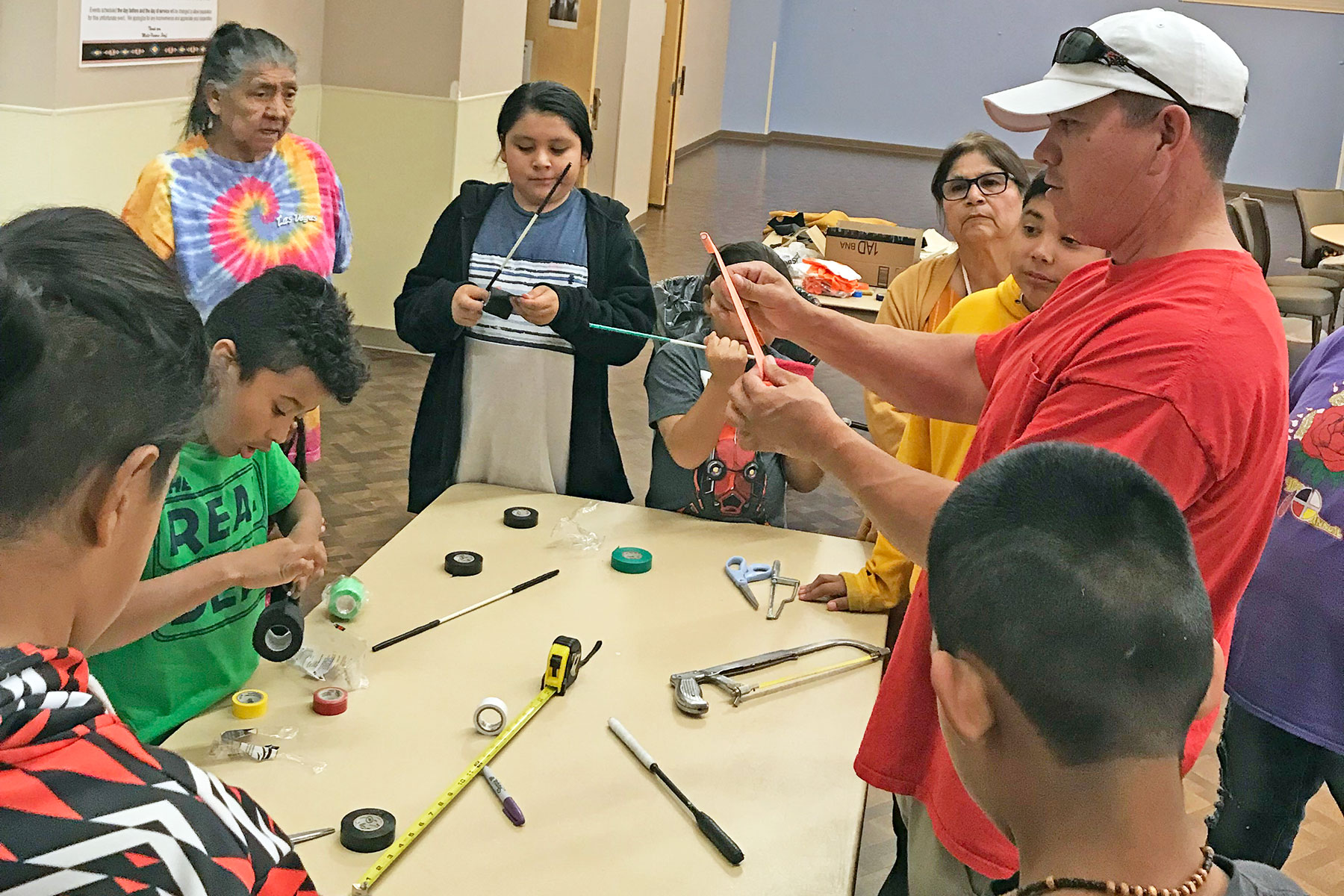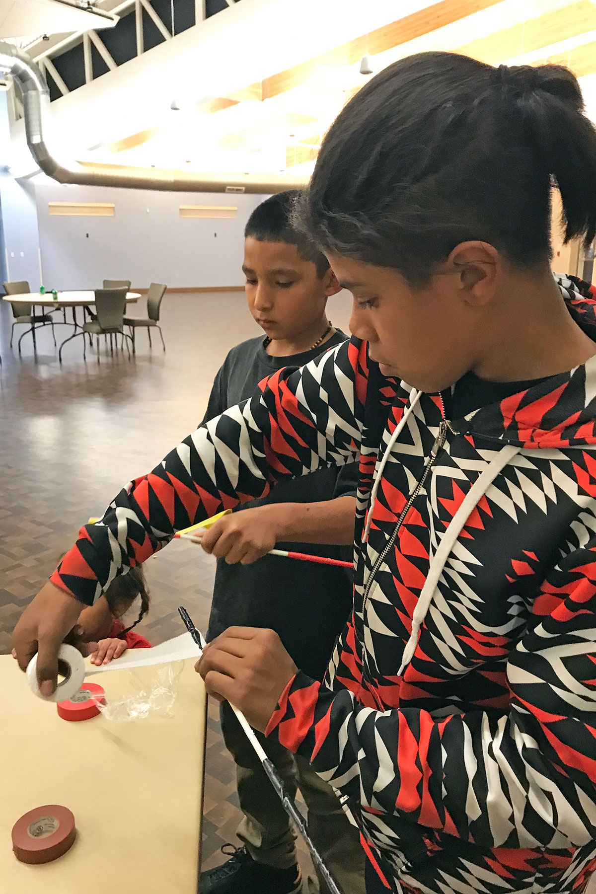 Tim Ryder of the Yellow Jacket drum group, taught the Eagle Wing drummers how to make their drum sticks, Wednesday, Sept. 2 at the Multi-Purpose Facility.