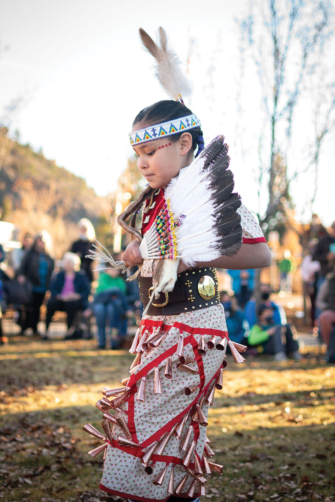 The Southern Ute Heritage Dancers performed at an outdoor celebration at the Durango Public Library in honor of Native American Heritage Month on the evening of Wednesday, Nov. 17. The performance showcased various forms of powwow dancing including — fancy dance, jingle dress as well as, northern and southern traditional. Dancers of all ages were in attendance, each showcasing their own unique style. The evening concluded with a round dance that joined performers and audience members and featured a special round dance song from Towaoc drummers. The event was made possible by the Southern Ute Culture Department.
