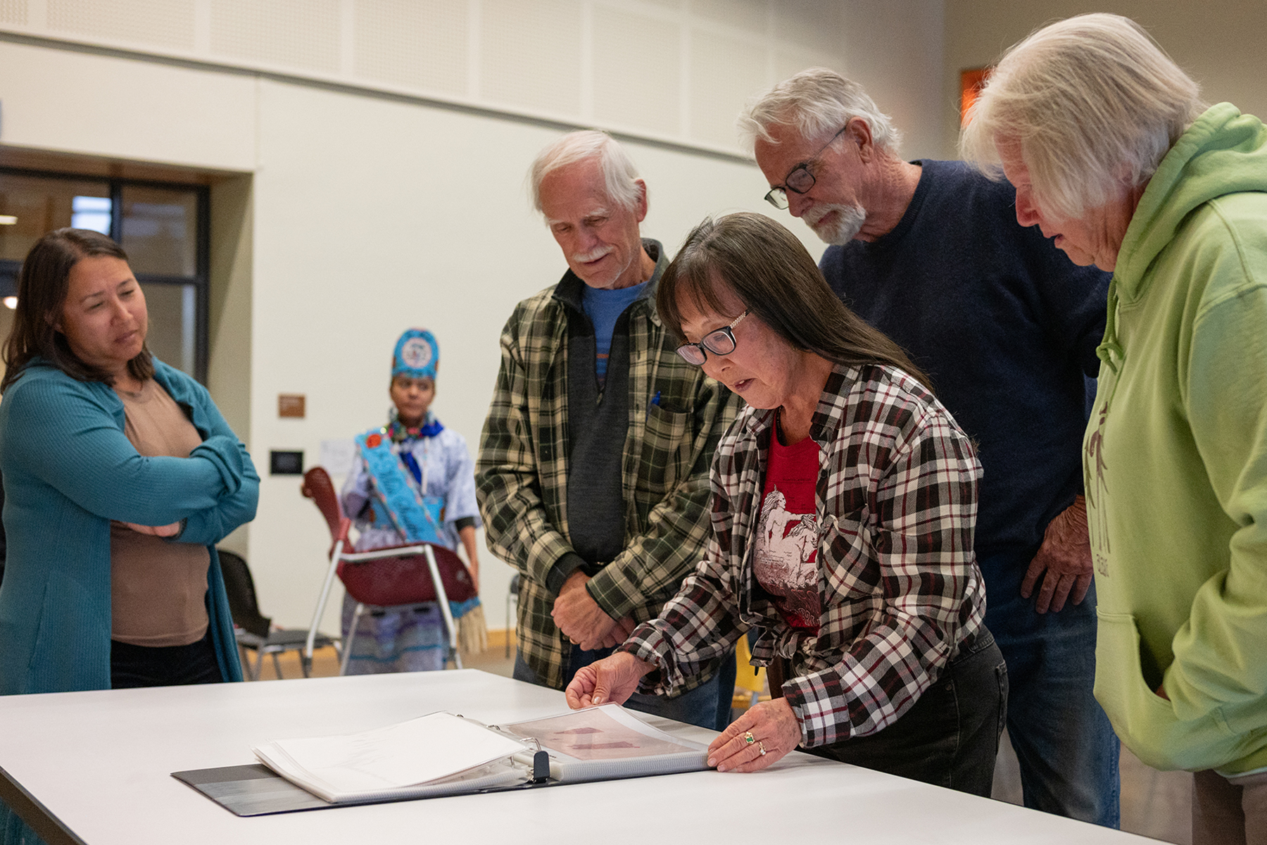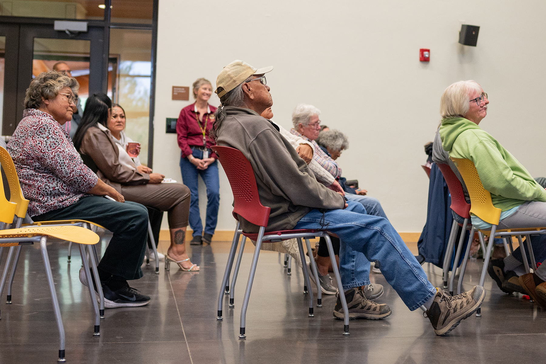 Visitors and residents of the community attend the storytelling of Yellow Nose, Ute Dog Soldier held at the Southern Ute Museum, Friday, Sept. 20. The storytelling was told by Oreland Joe, local Diné and Ute artist.