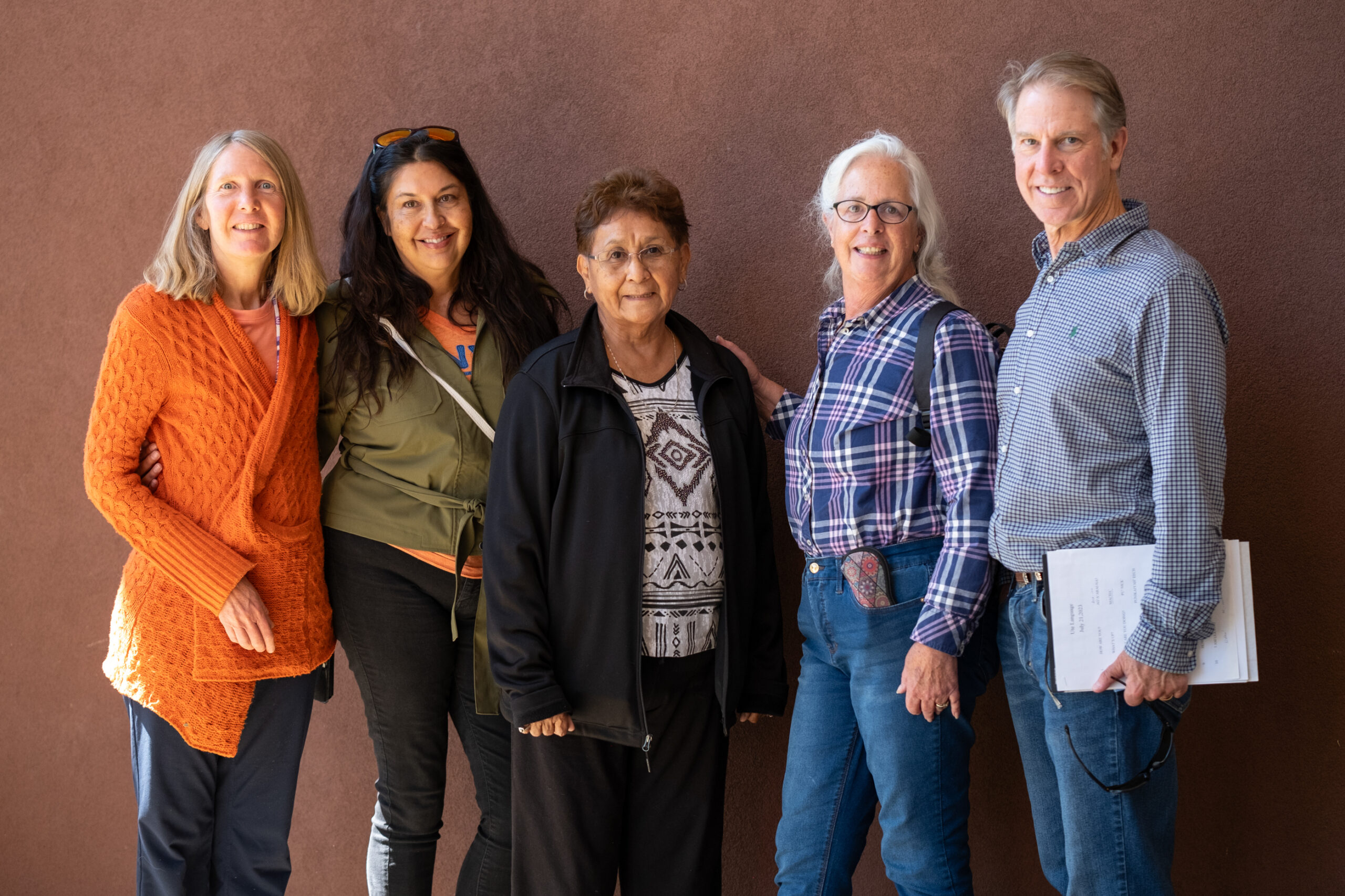 The Ute language class wrapped up for employees of the Southern Ute Indian Tribe, Friday, Oct. 29. Ute Language participants stand together for a photo in the Hall of Warriors, alongside Ute language instructor and tribal elder, Lynda D’Wolf.