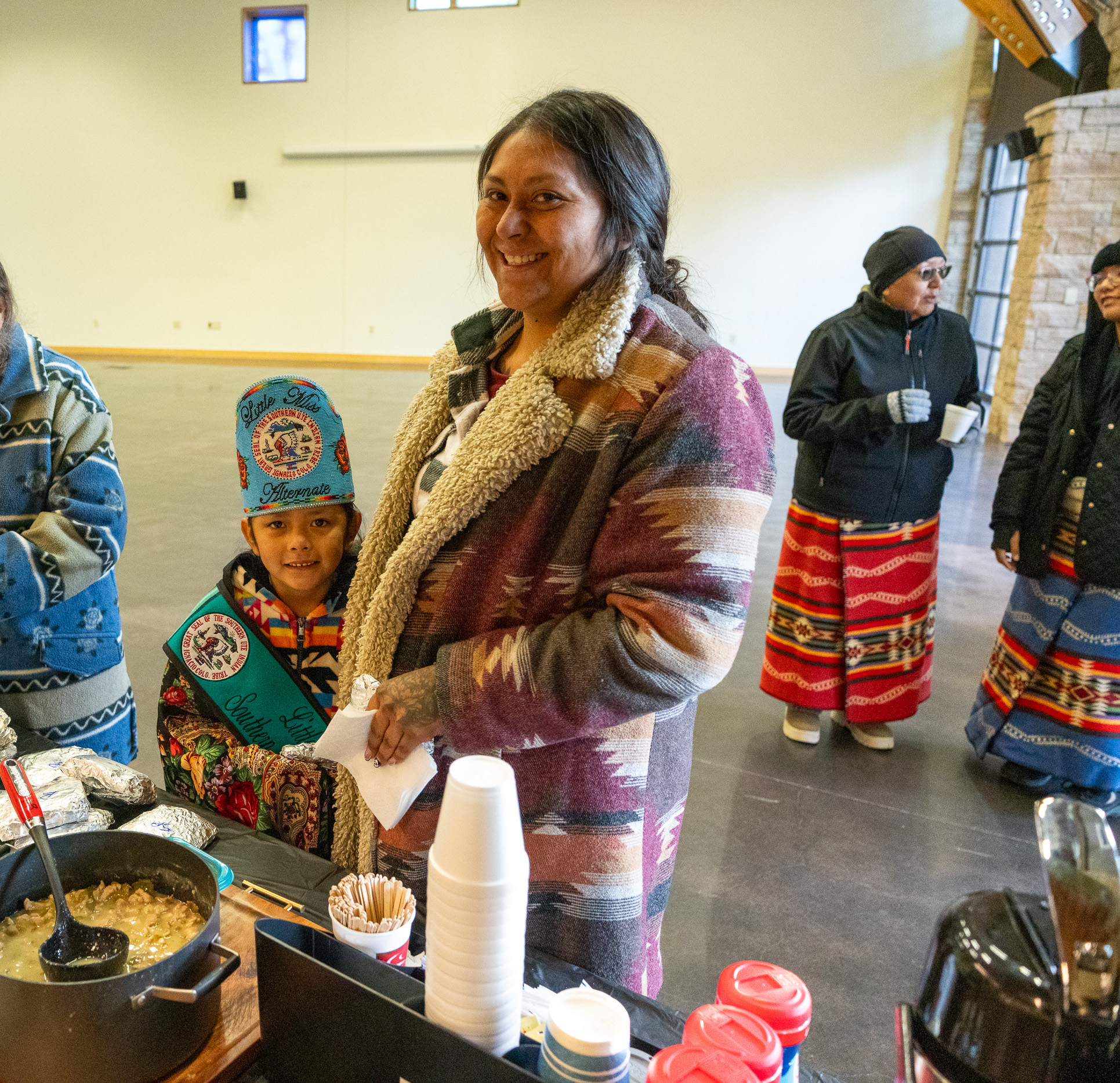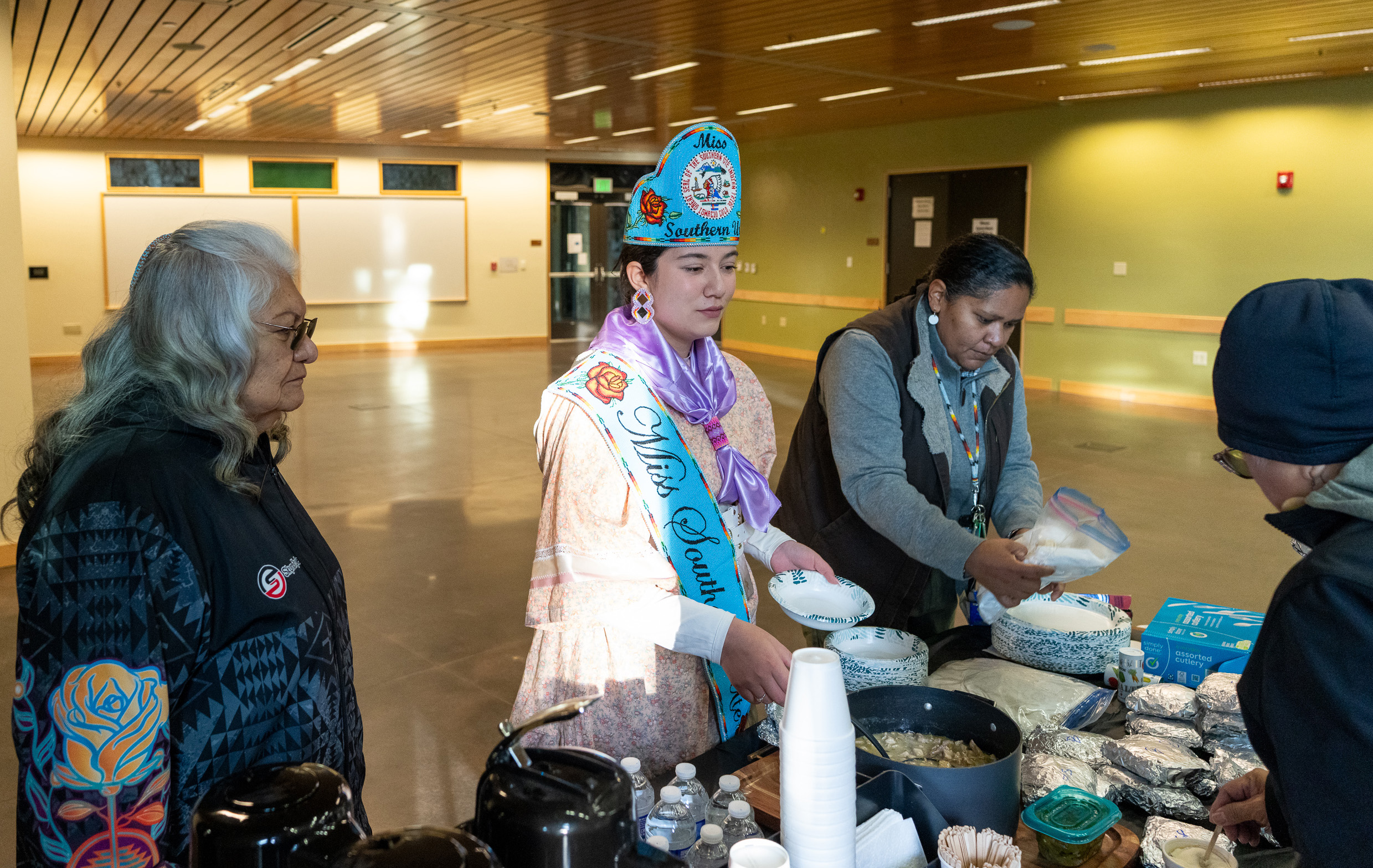 Zuriah Baker, representing her title as Miss Southern Ute, serves breakfast to the guests following the sunrise ceremony, Monday, Nov. 3.
