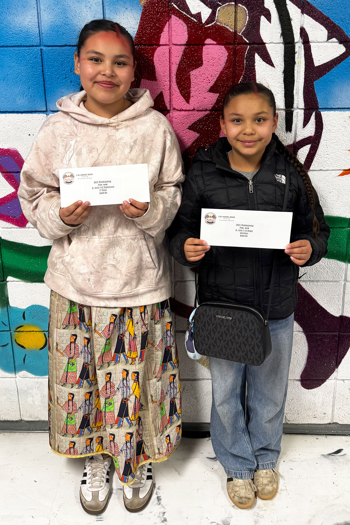Shayne White Thunder placed first in the Junior girls’ traditional category, and Malia White Thunder placed fourth in the Junior girls’ jingle category at the Thanksgiving Powwow.