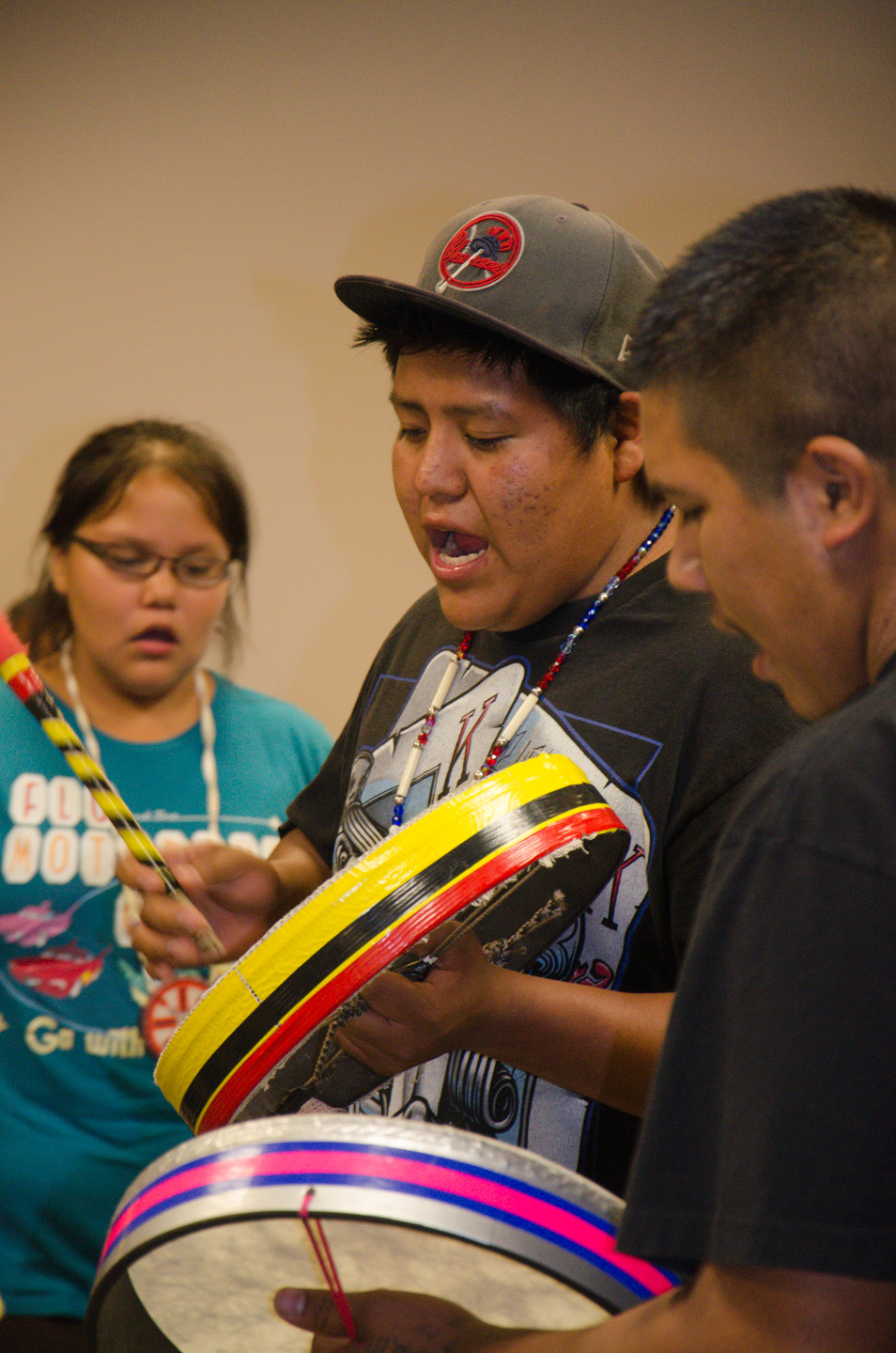 In a Bear Dance session, Northern Ute Bear Dance Chief AJ Kanip told the students that a leader always has positive thoughts.