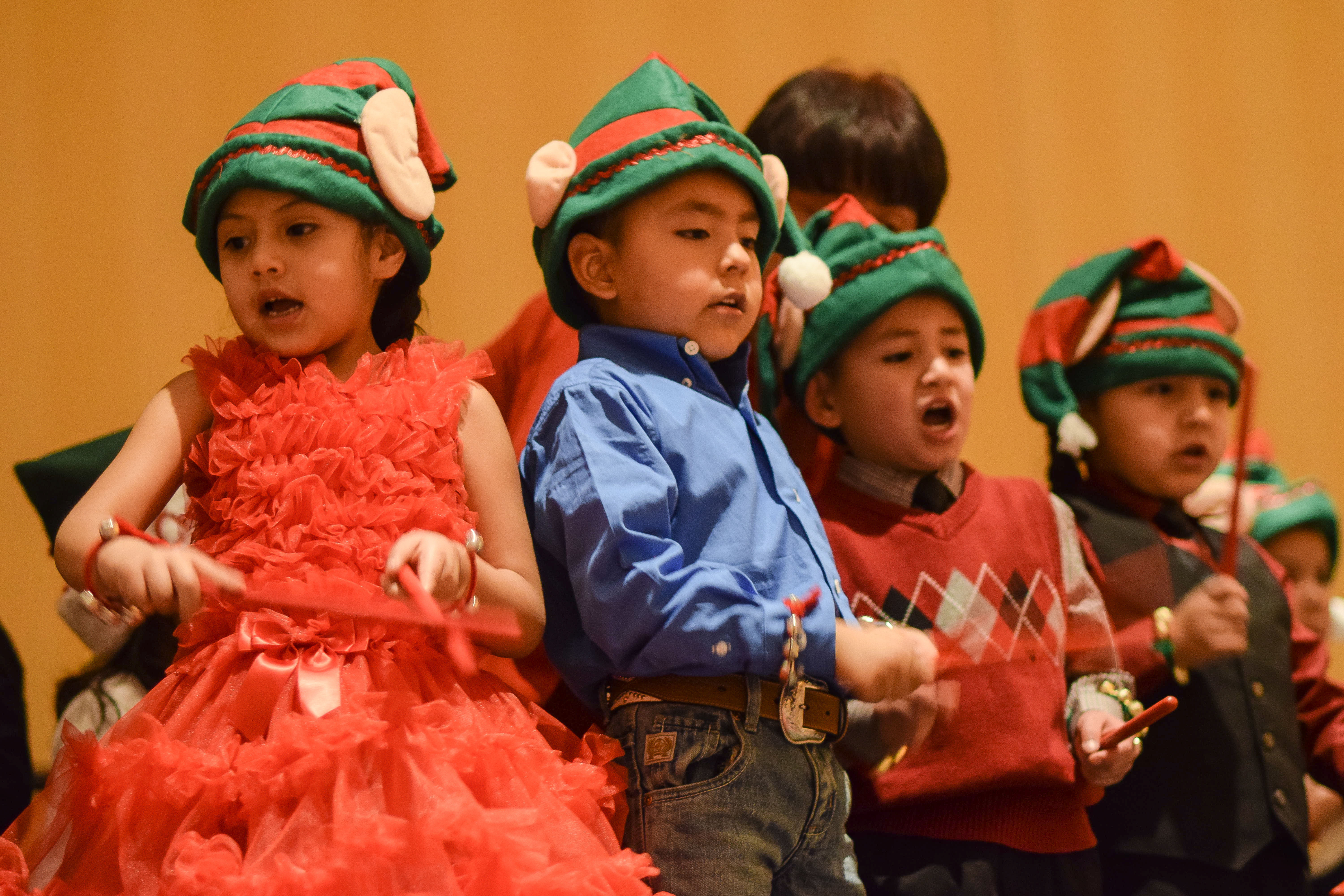 Southern Ute Indian Montessori Academy students open the SUIMA Christmas Program with the song, “At Christmas Time, Everyone is Singing.”