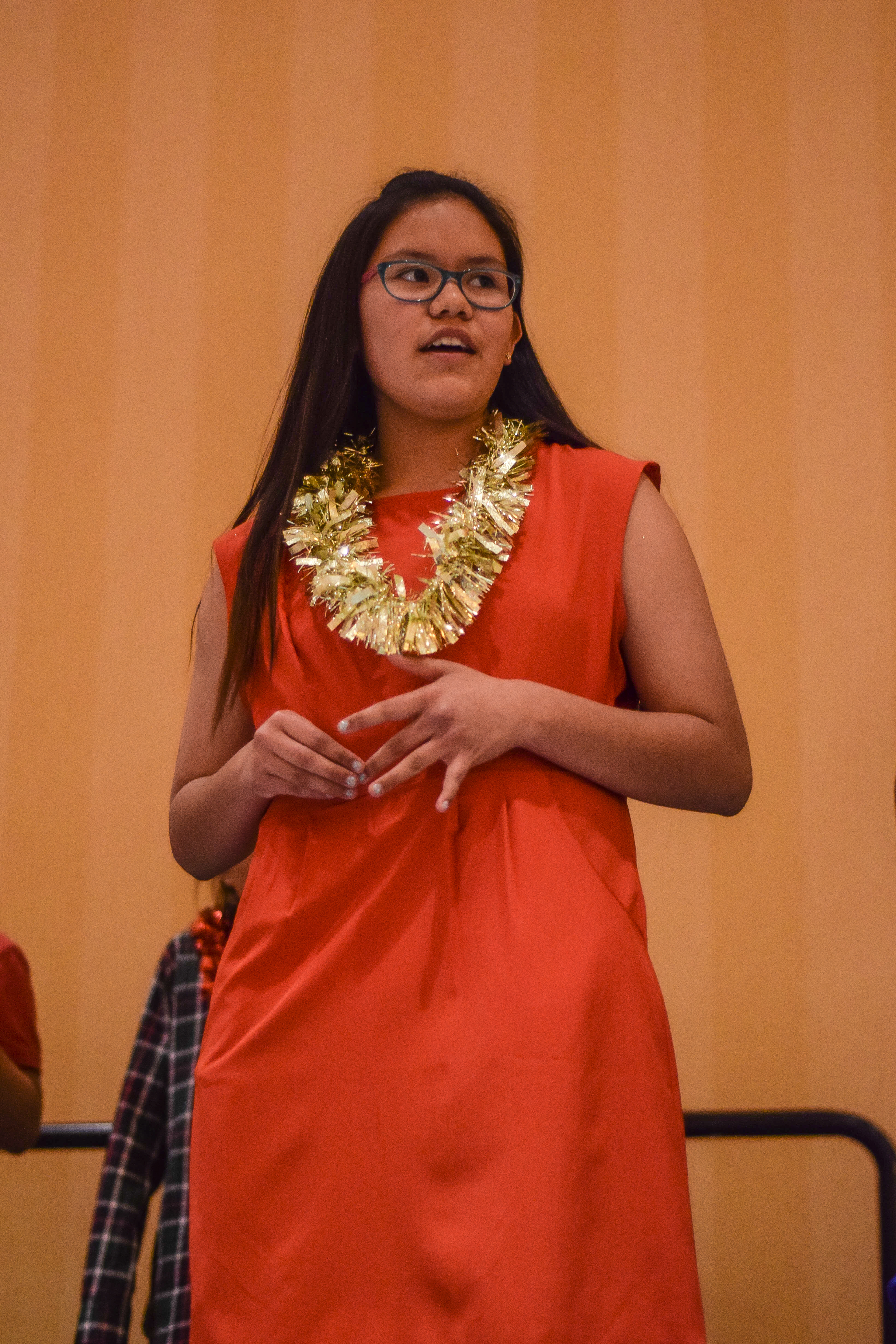 The Southern Ute Indian Montessori Academy closed out the Christmas dinner with their program “Bells, Elves, and Holiday Cheer”. Students from the upper elementary, lower elementary, primary, and kindergarten joined together in singing a number of holiday songs to guests that consisted of “Christmas Bells”, “Jingle Bells”, “Groovin’ Elf”, and “We Wish You A Merry Christmas.”