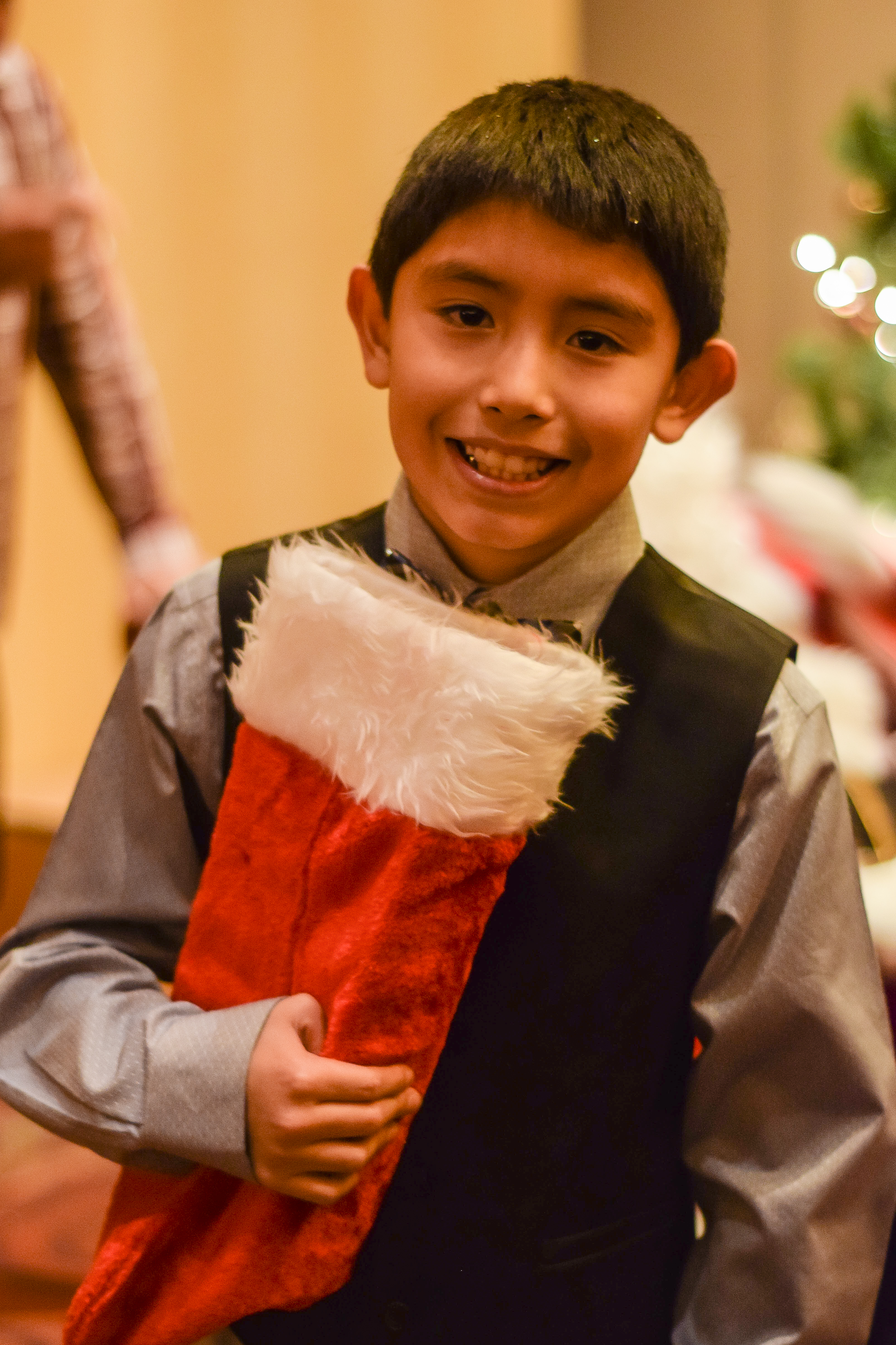 Davian Herrera smiles as he's given a Christmas stocking full of goodies.