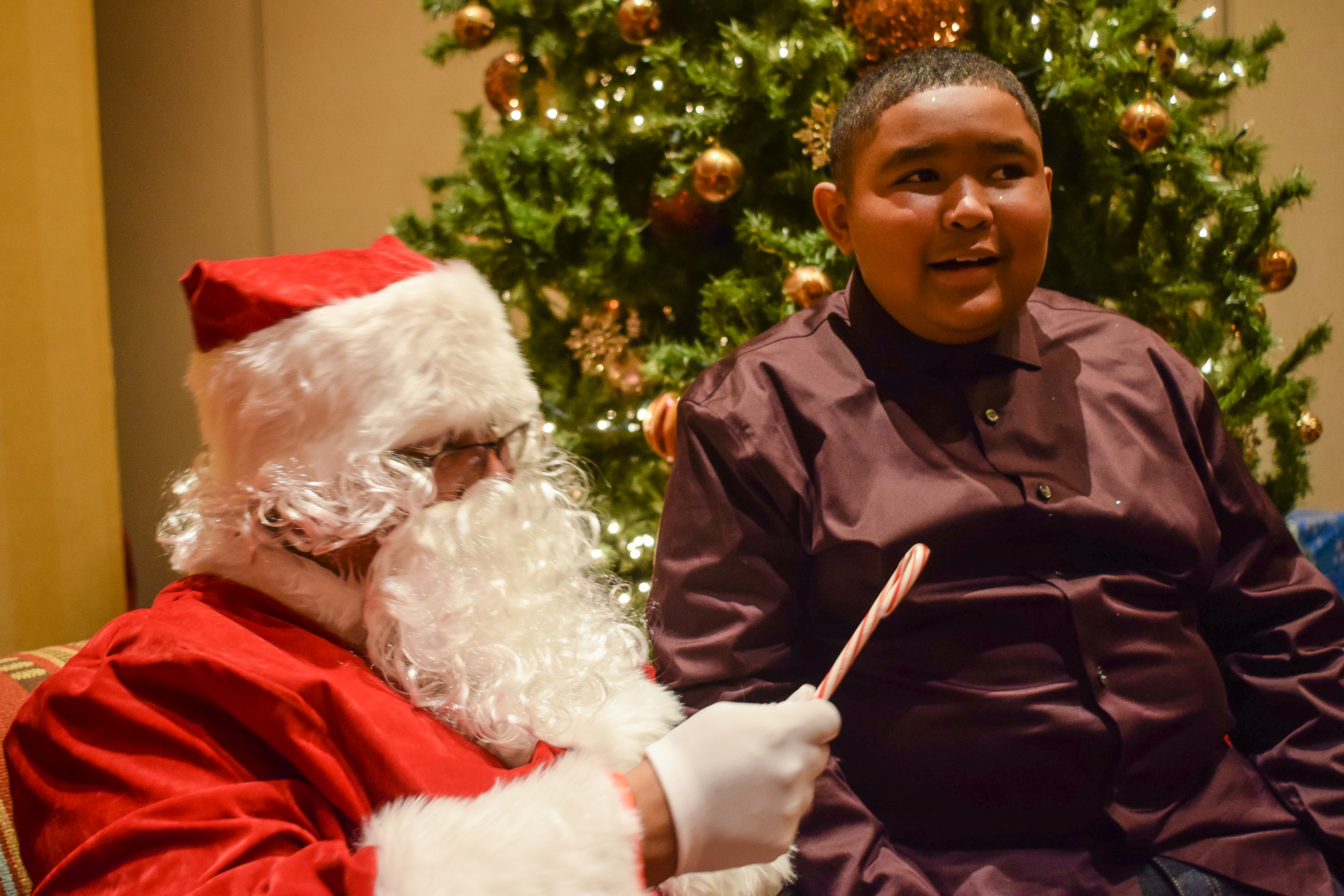 Tribal member Tamarius Roland tells Santa Claus what he wants for Christmas.