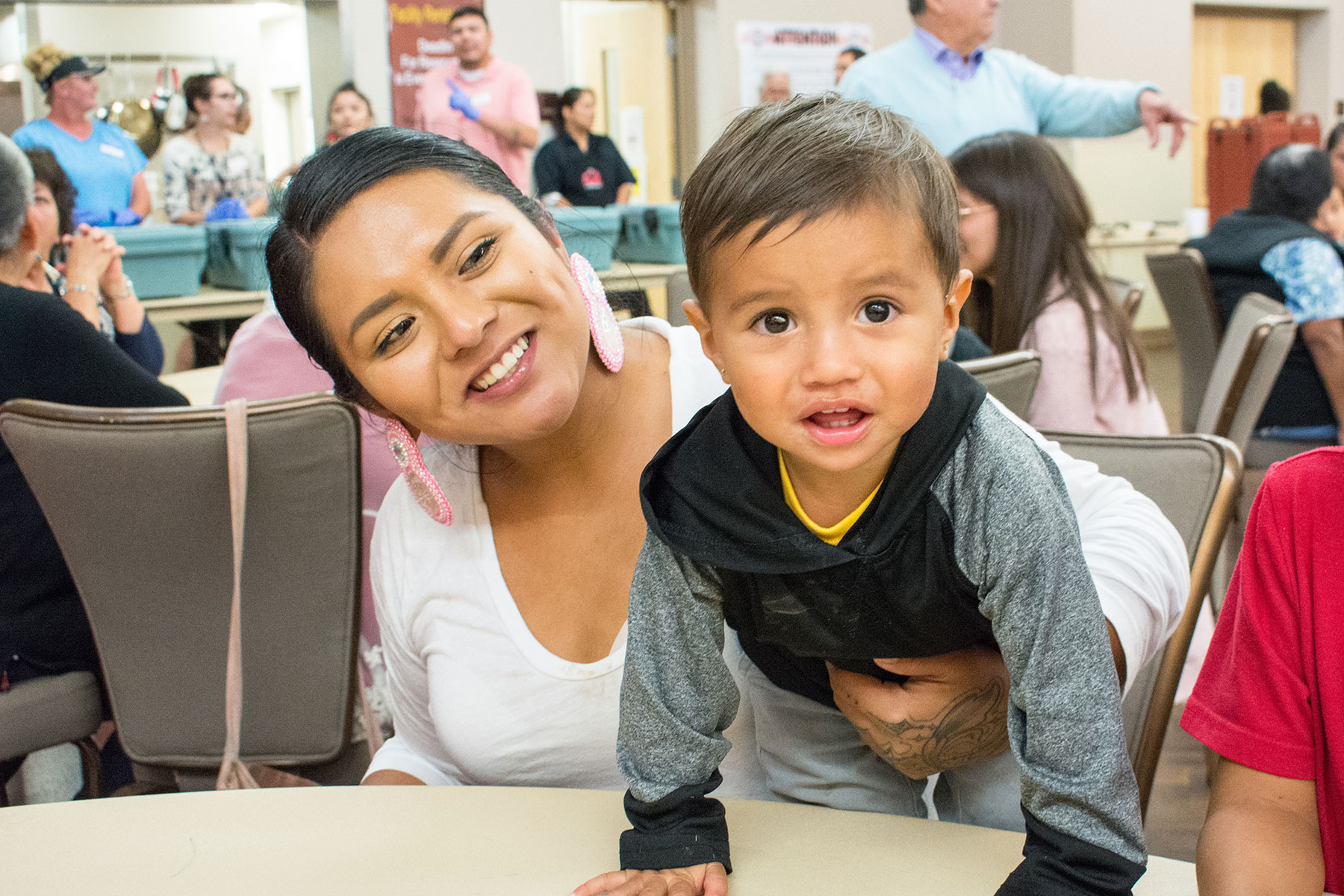 Kristean Velasquez and Christian Cash Velasquez wait for the Southern Ute Family BBQ to begin. The BBQ was sponsored by the Education Department and featured door prizes and guest speakers, Monday, Sept. 23.