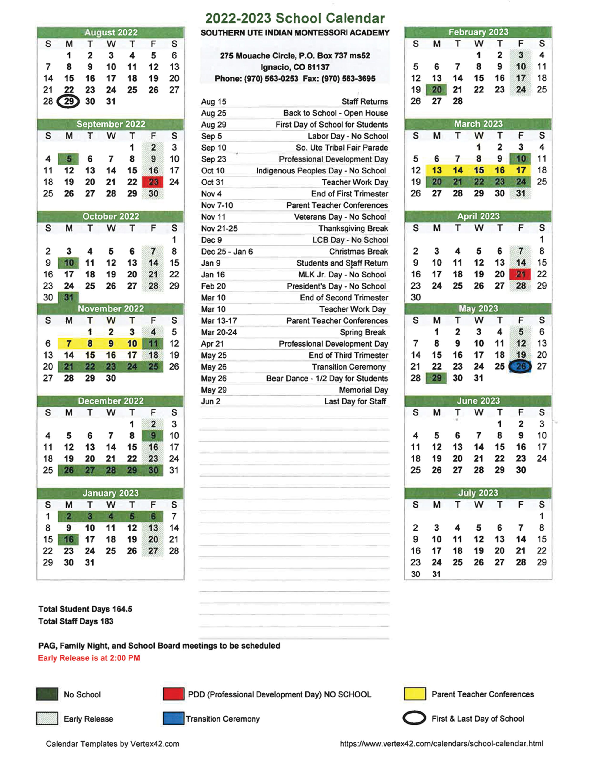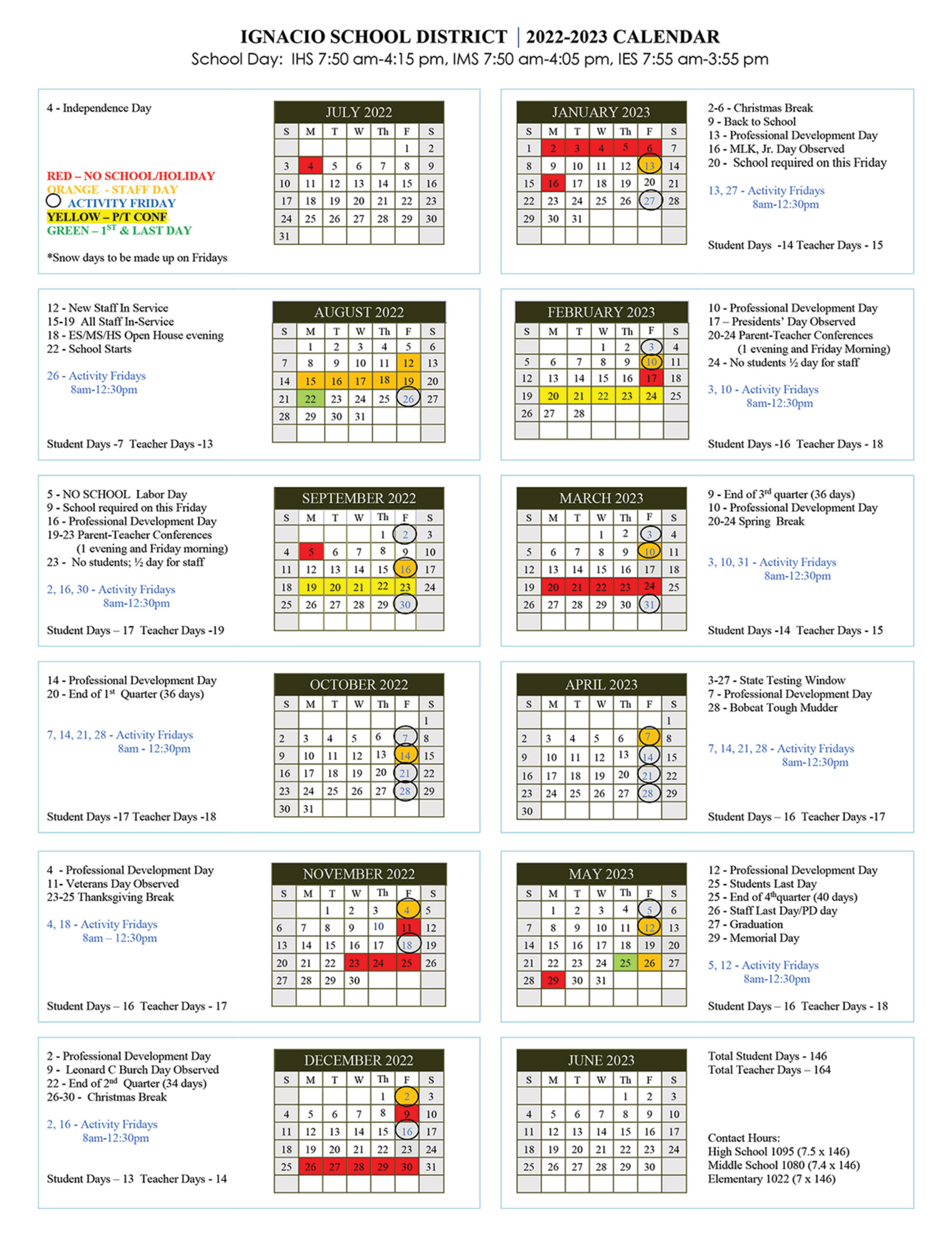 Ignacio School District / SUIMA School Calendars