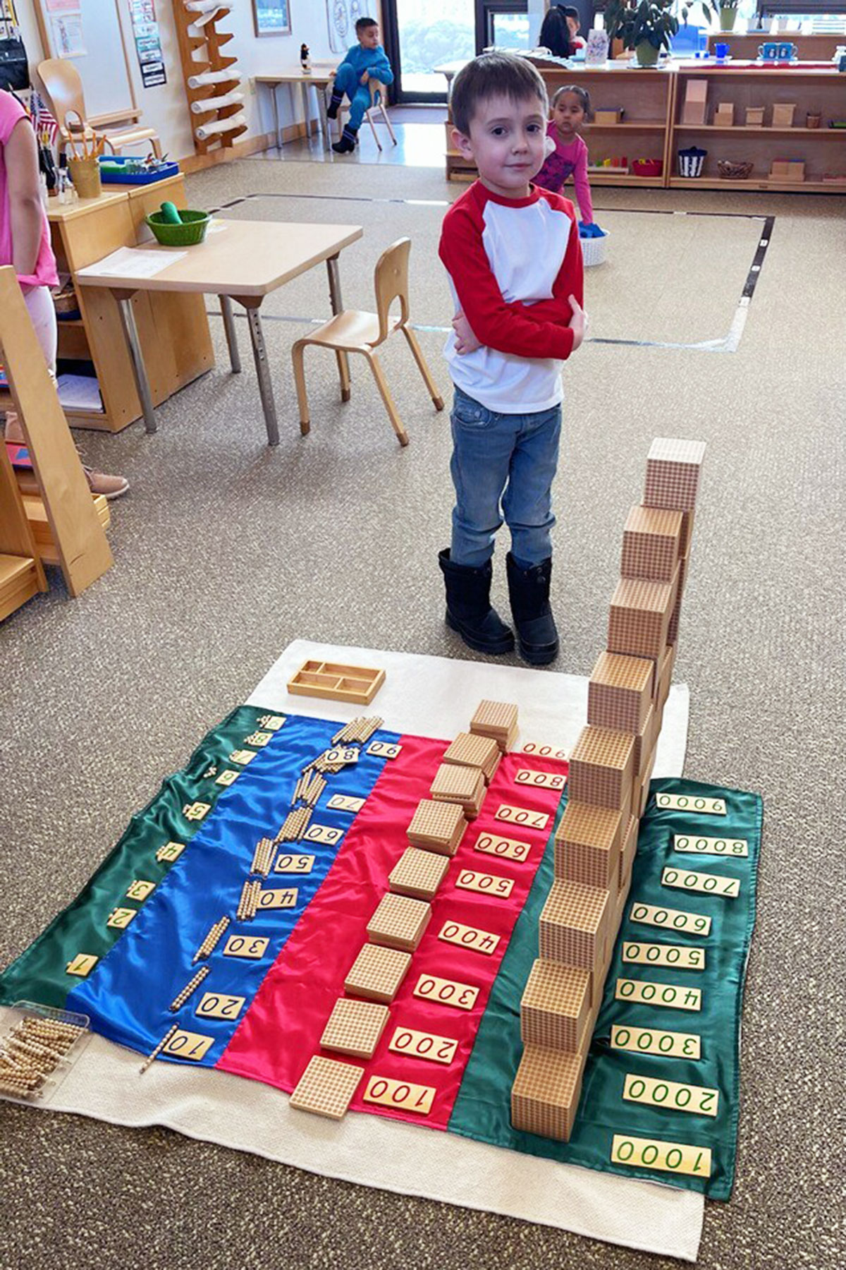 The prepared environment in a Montessori classroom helps bring calmness to the child so that their need for routine is easily pursued and fed. The child will then discover the math materials and understand that math is concrete before it becomes abstract. It is at this time that math becomes meaningful and magical.