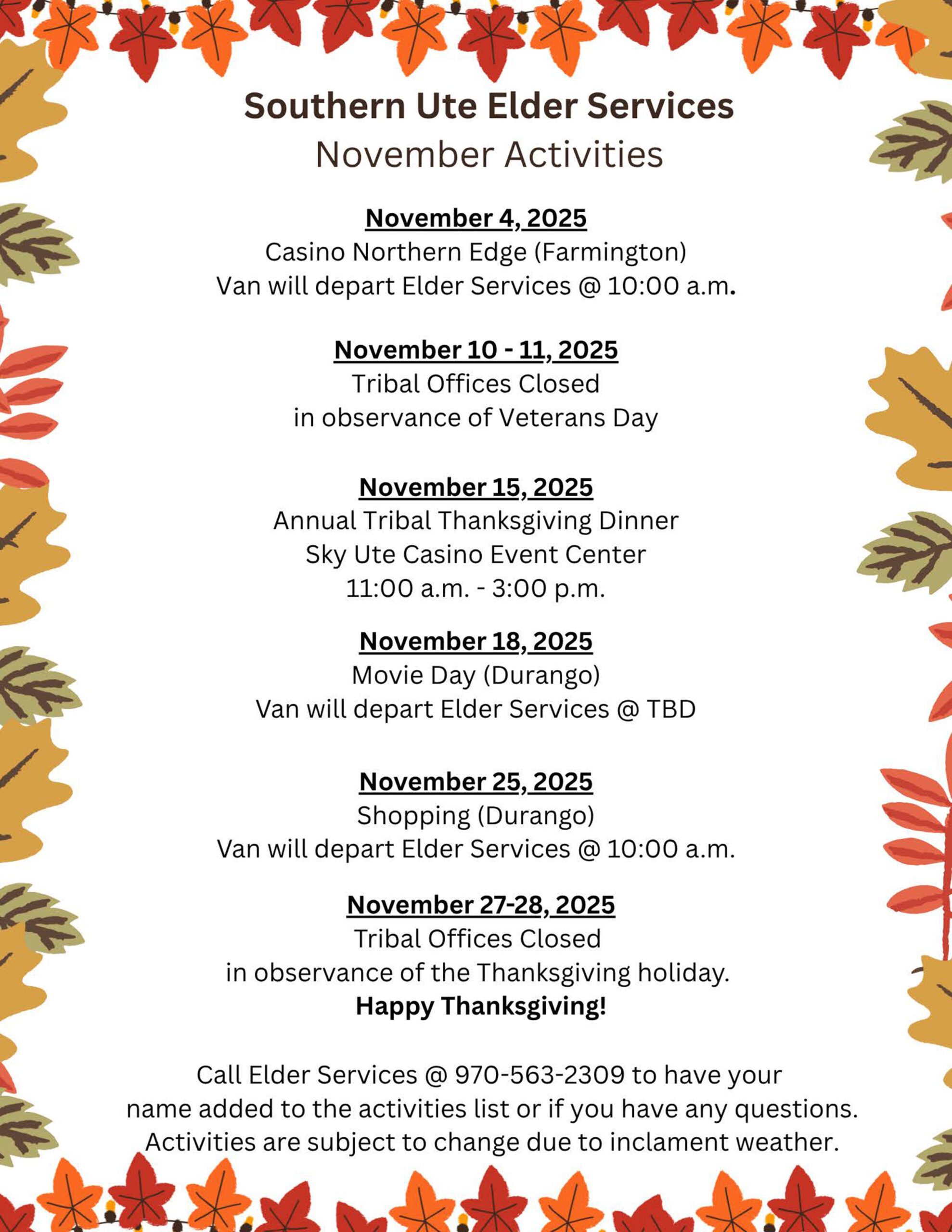 Southern Ute Elder Services November