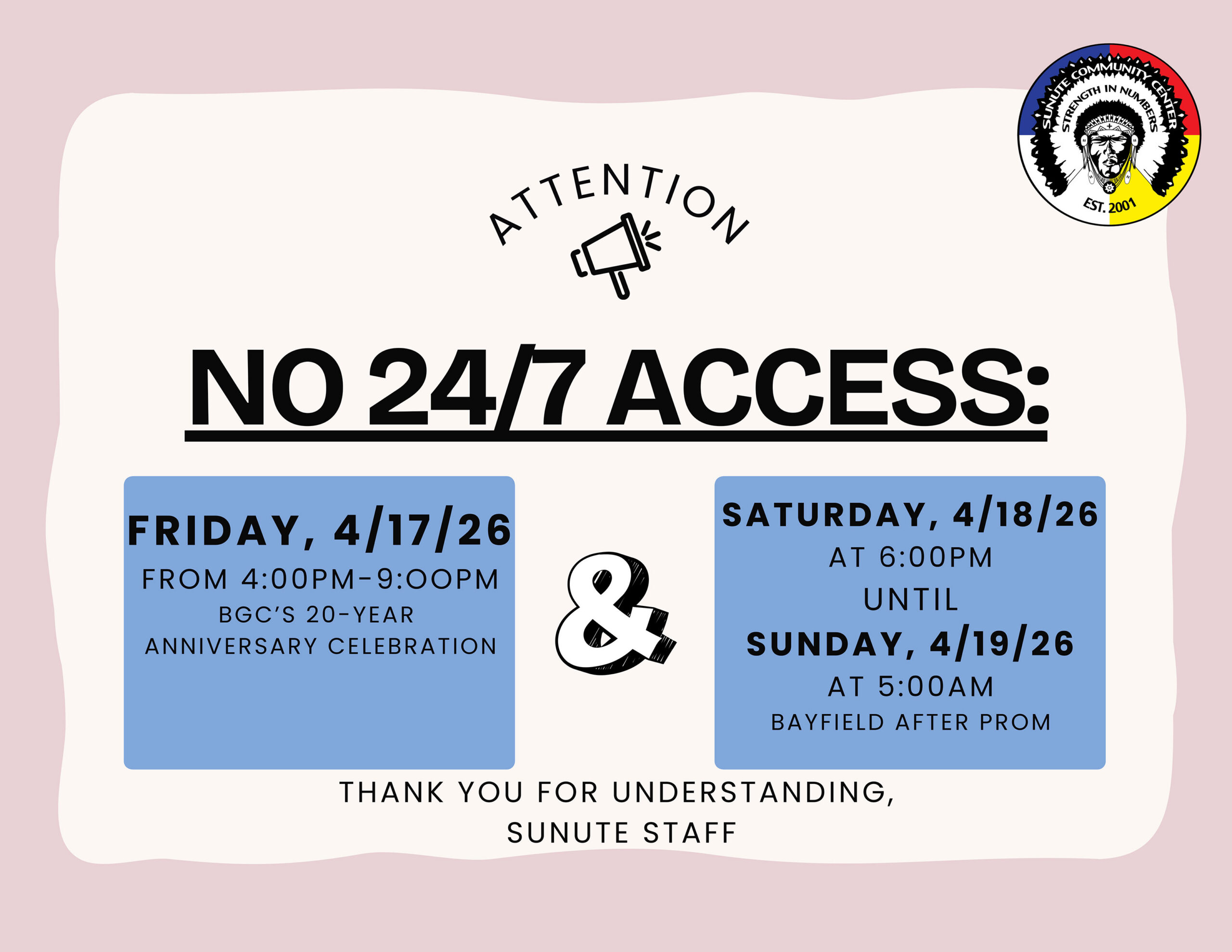 SunUte: No 24/7 Access Dates