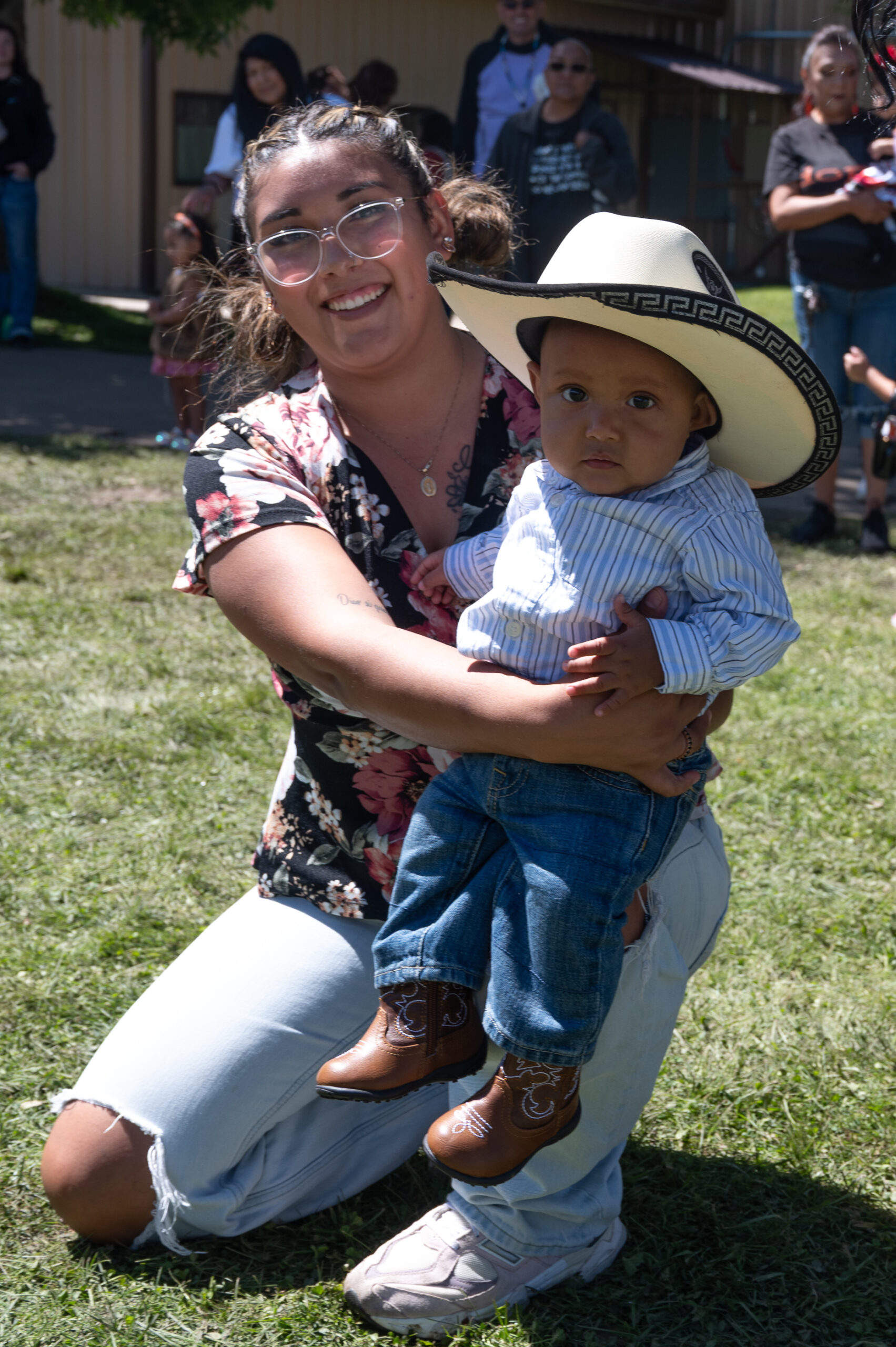 Cecilia Stubbs lines up with her and Sammy Romero's son for the "Western Boy" category of the Southern Ute Tribal Fair Baby Contest.