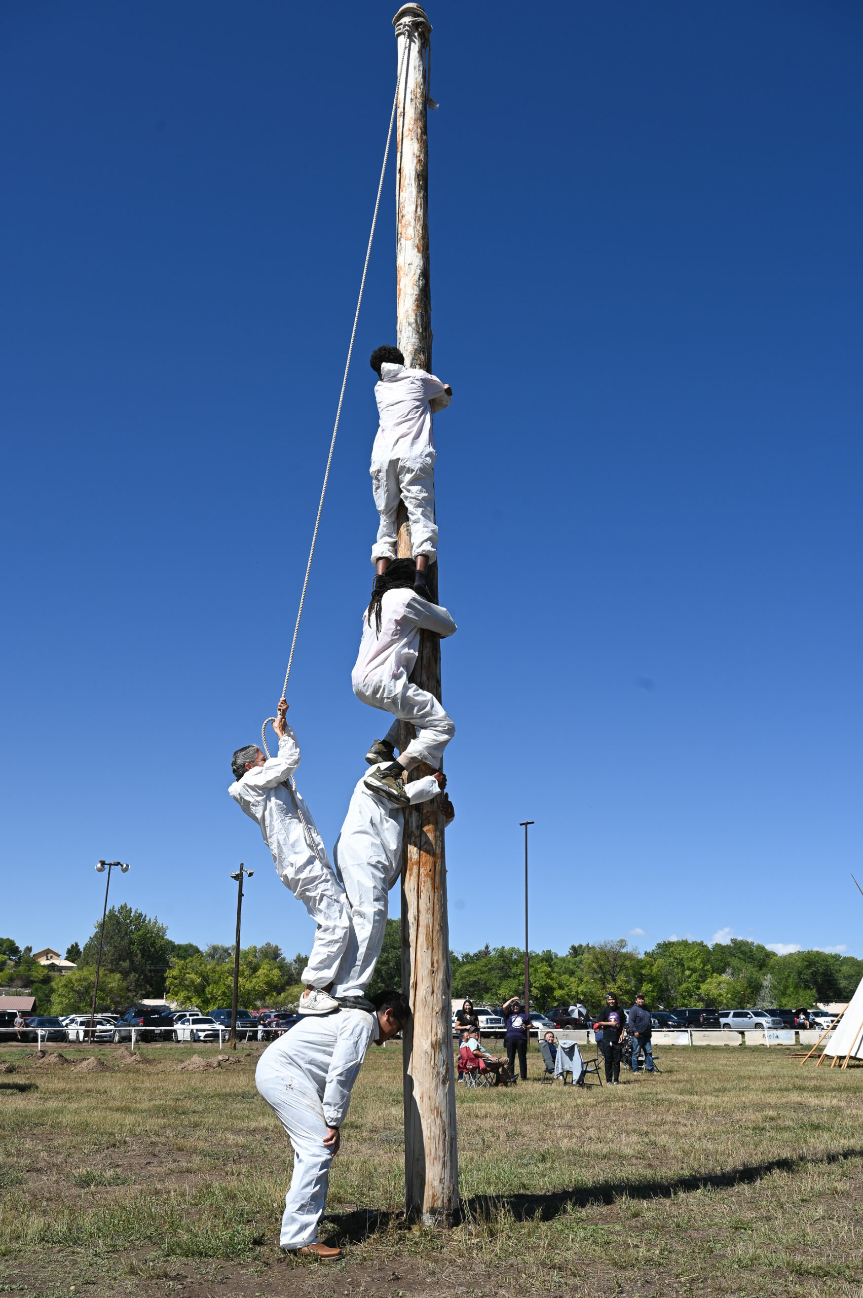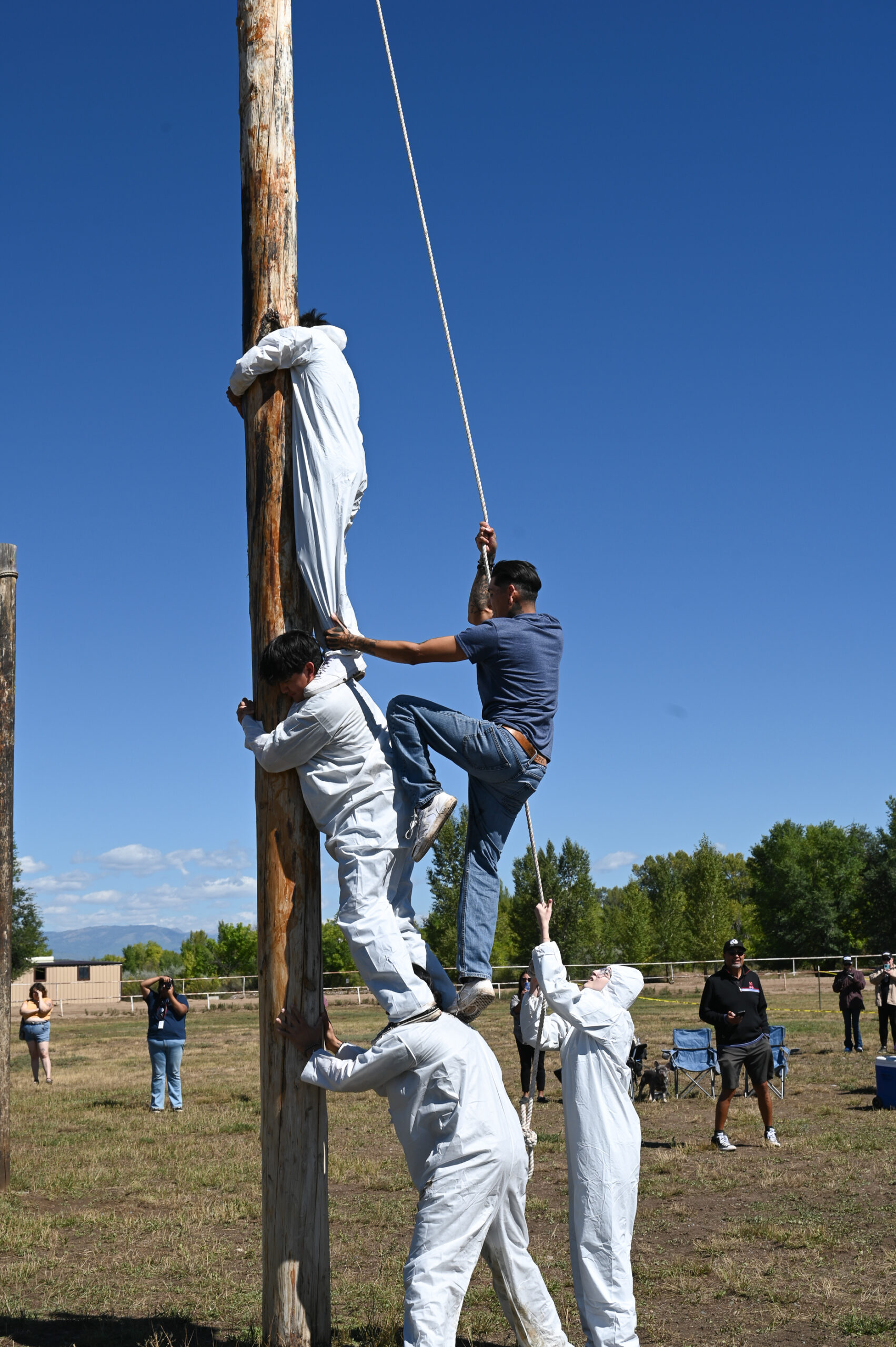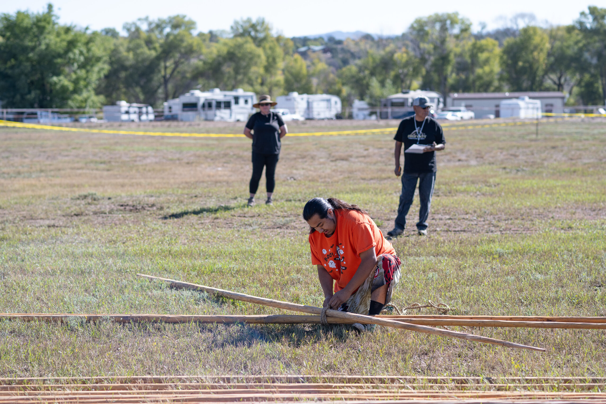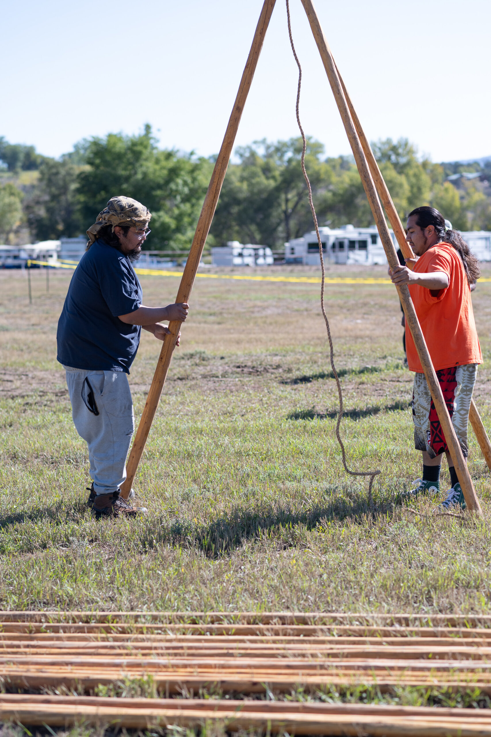 Teams work together to raise a tipi as fast as possible on Sunday, Sept. 14 at the Sky Ute Fairgrounds, as one of the contests held during the 103rd Annual Southern Ute Tribal Fair.