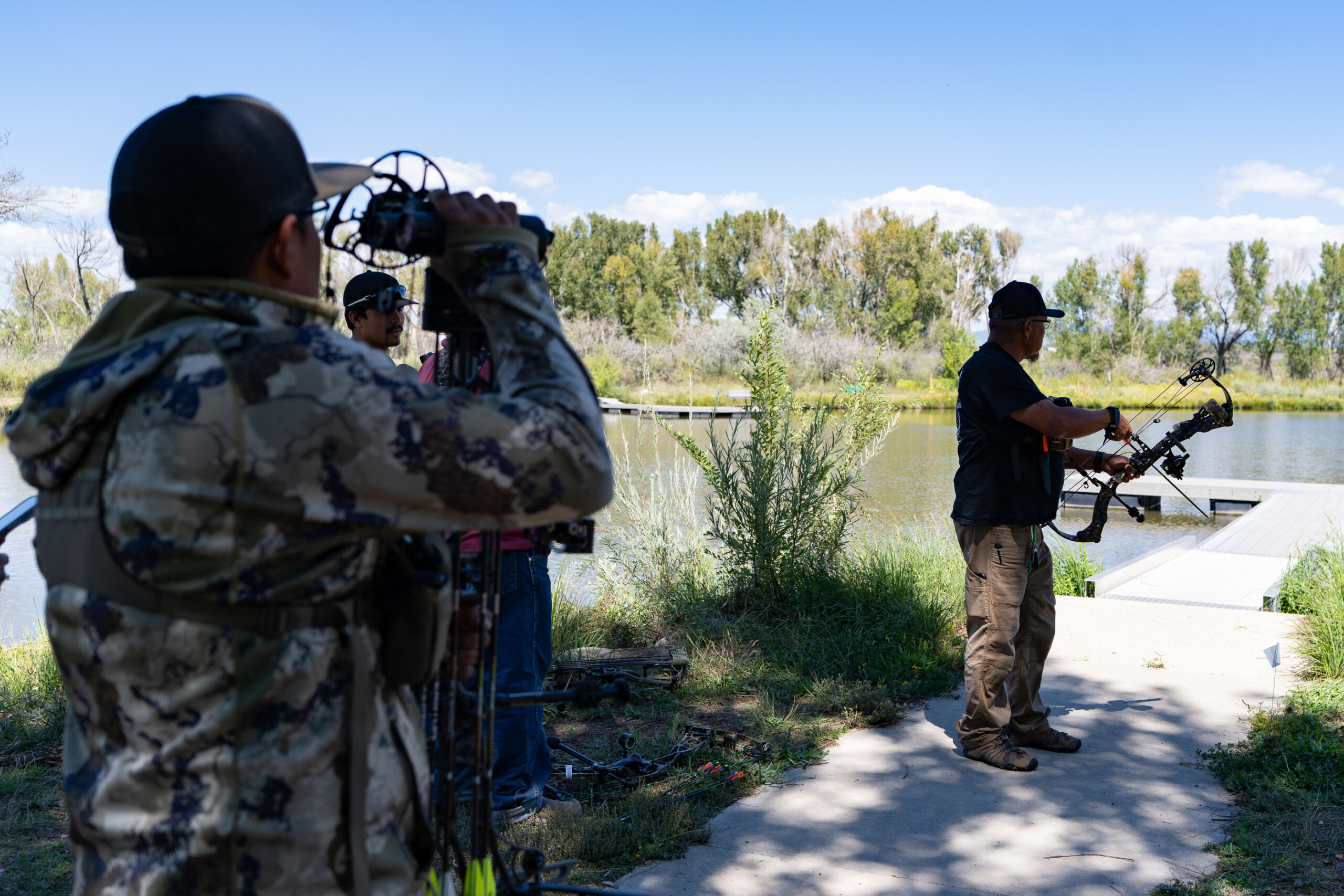 Southern Ute tribal elder, Ernest “Muz” Pinnecoose shoots traditional in the men’s category during the annual 3D Archery Challenge, Sunday, Sept. 14, sponsored by the SunUte Community Center.