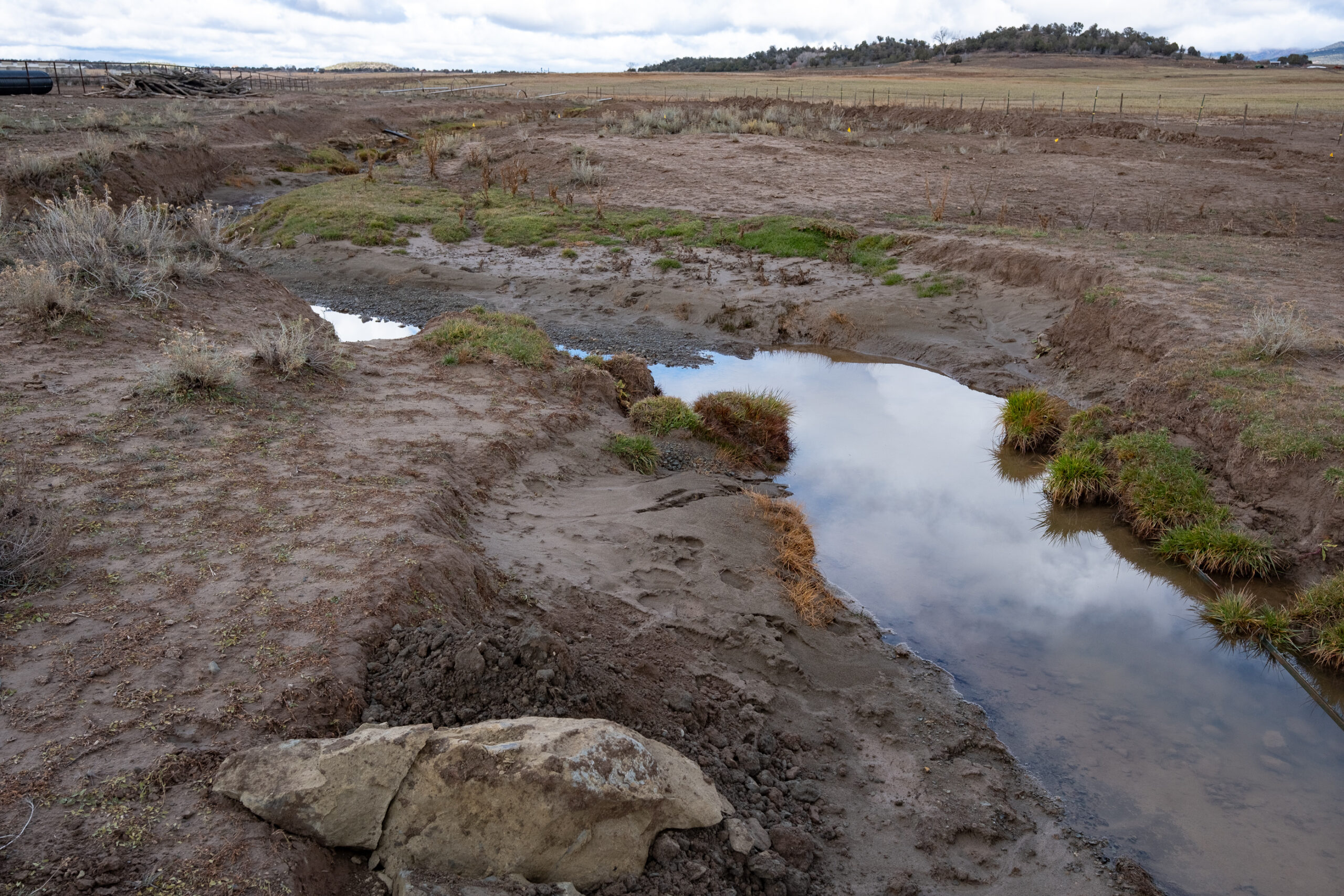 Salabar Draw is a small perennial stream that bisects the pasture. “The northern portion of the stream has been open to unrestricted grazing by the herd since animals were introduced,” said Aran Johnson, Southern Ute Wildlife Resource Division Head. “The southern portion of the stream has had varying levels of fencing to restrict bison access, but wire fencing is not particularly effective if bison want what is on the other side, so there were frequent ‘break-ins.’”