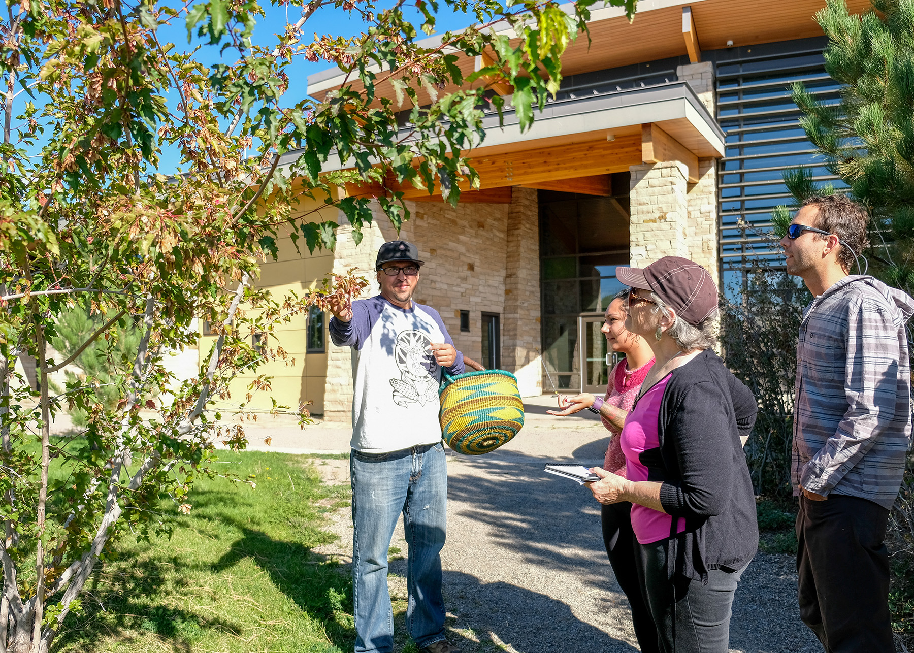 “Who knows what kind of tree this is?” asks Chef Karlos Baca as he takes participants foraging for food in the gardens behind the Southern Ute Museum on Tuesday, Sept. 11.