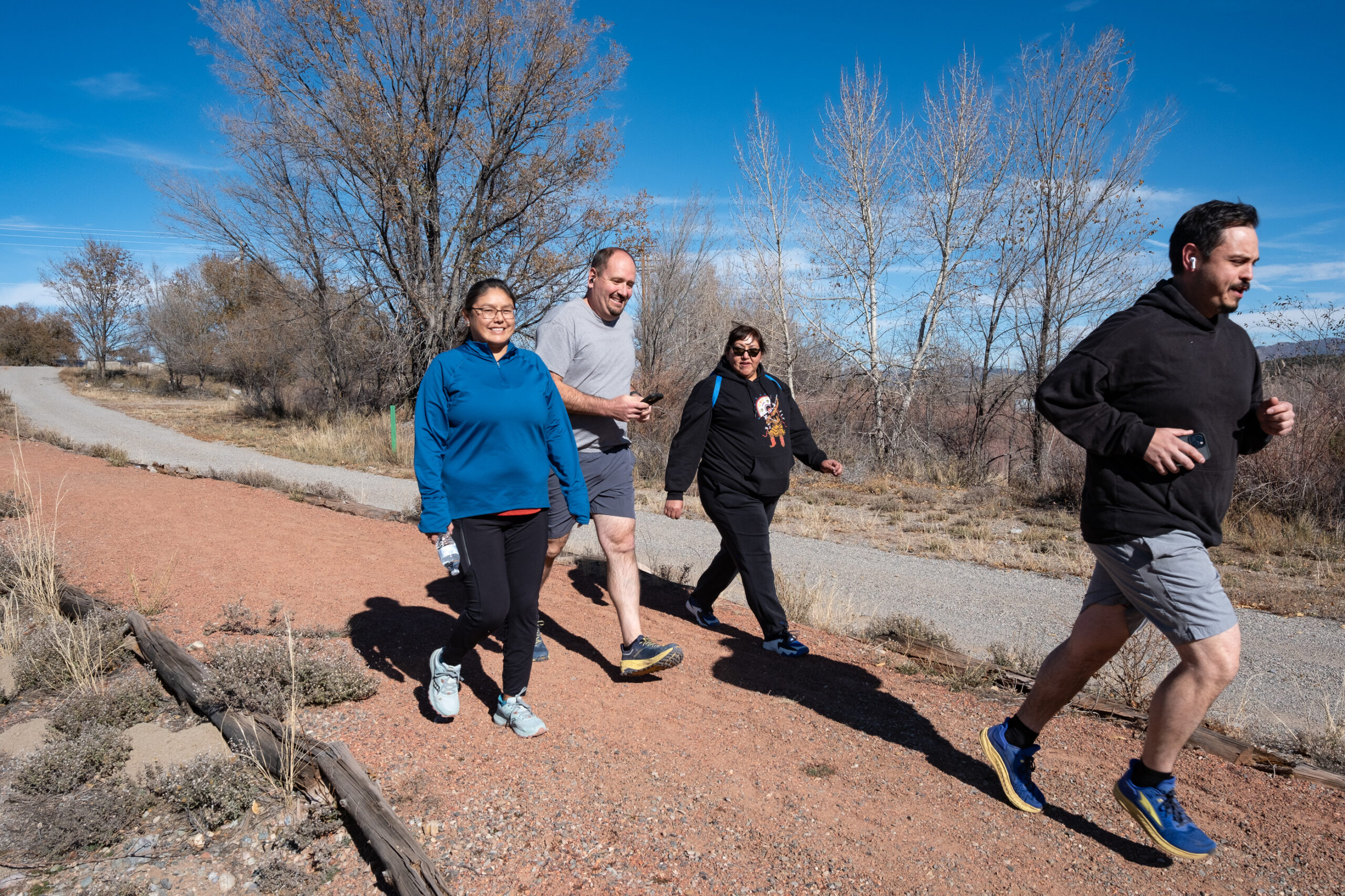 The 4th annual Outrunnin’ Diabetes Fun Run and Walk, sponsored by the Albuquerque Area Dental Support Center and Shining Mountain Health &Wellness brought community members together for some physical activity on Thursday, Nov. 21. Participants make their way along the Bear Trail, kicking off the walk/run event on a warm autumn afternoon.