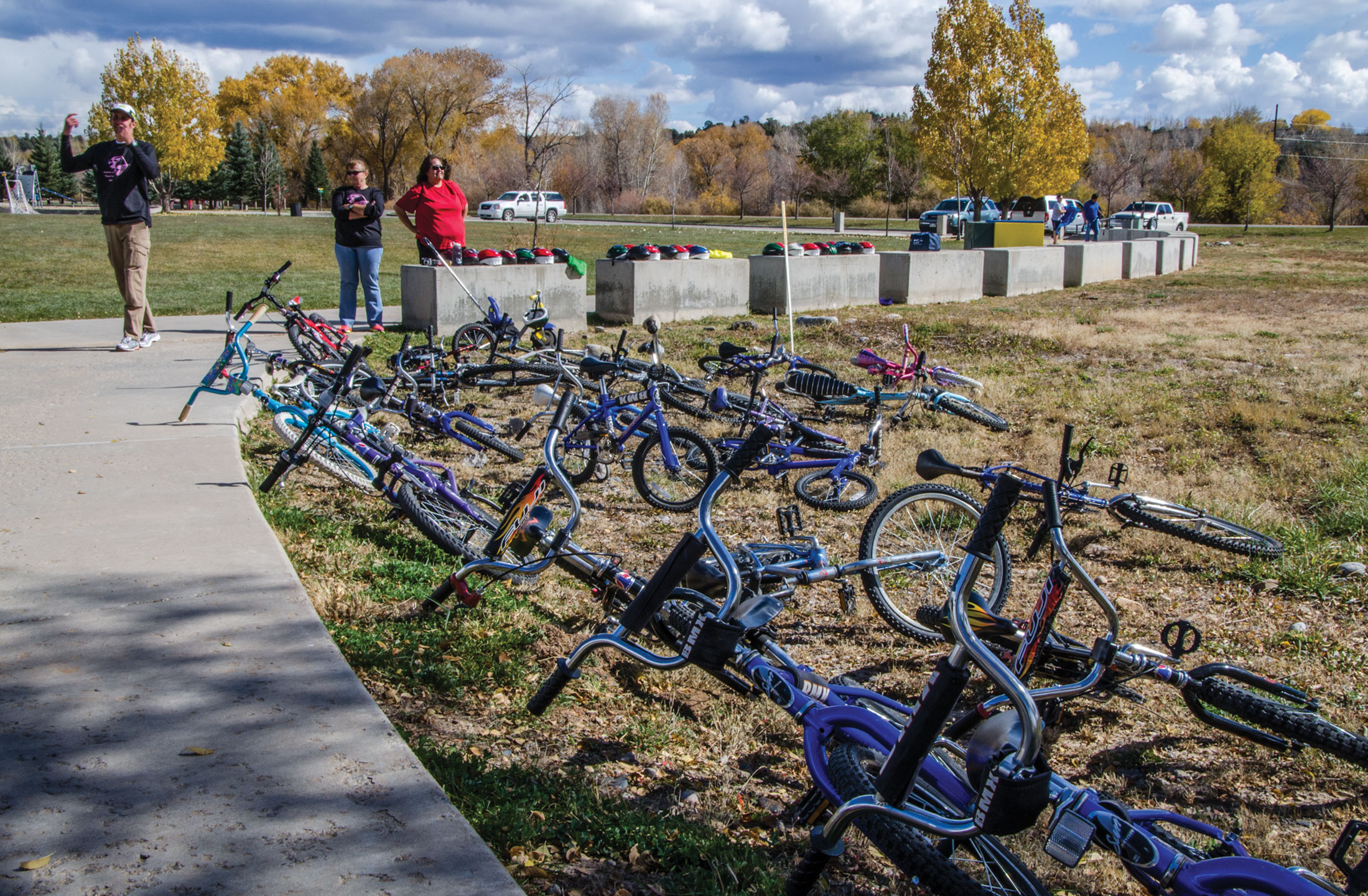 The Southern Ute Indian Montessori Academy's annual triathlon started outside at the SunUte Community Center track for a bike ride and concluded in the swimming pool with the annual Pumpkin Splash.