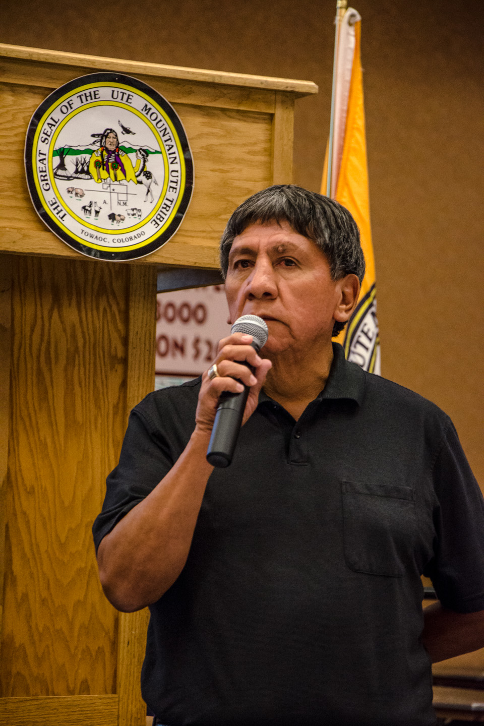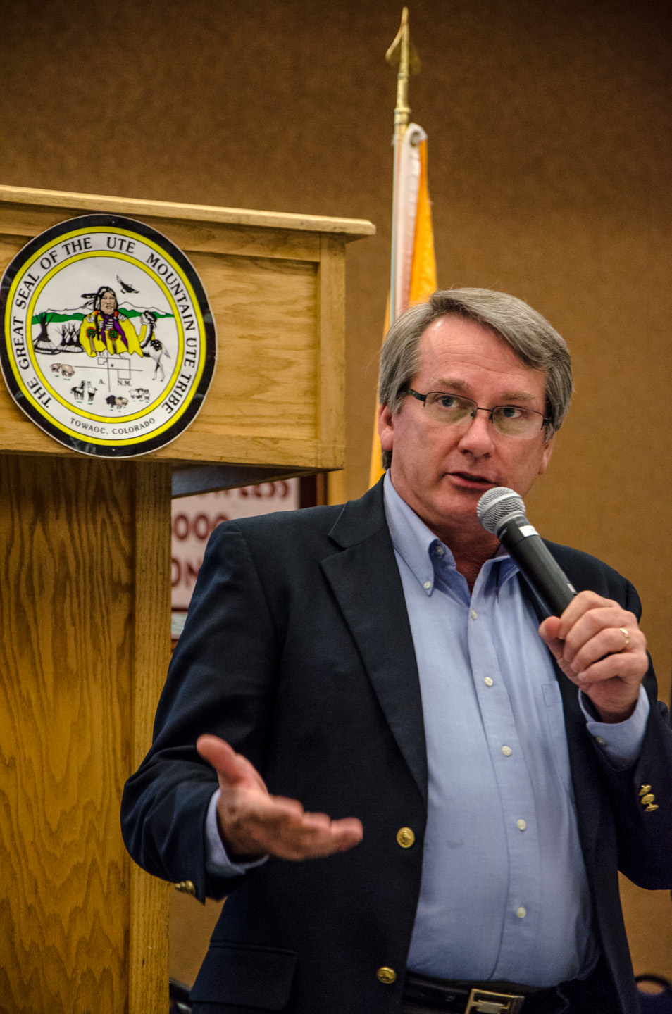 Scott McIntyre, health care consultant for the Southern Ute Indian Tribe, spoke on behalf of the Southern Ute Health Center in regards of the Memorandum of Understanding (MOU) between the U.S. Department of Veterans Affairs and the U.S. Indian Health Service. The MOU was signed in Dec. 2013 and ensured Veteran Affairs services were made available at the Southern Ute Health Center, providing a better convenience for local veterans in Ignacio and the surrounding area.