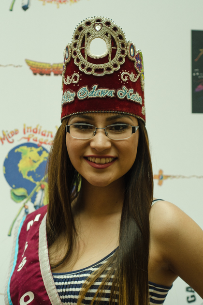 Tiana Schocko from Michigan gives a smile at the Miss Indian World Pageant.