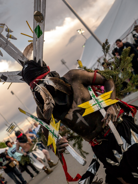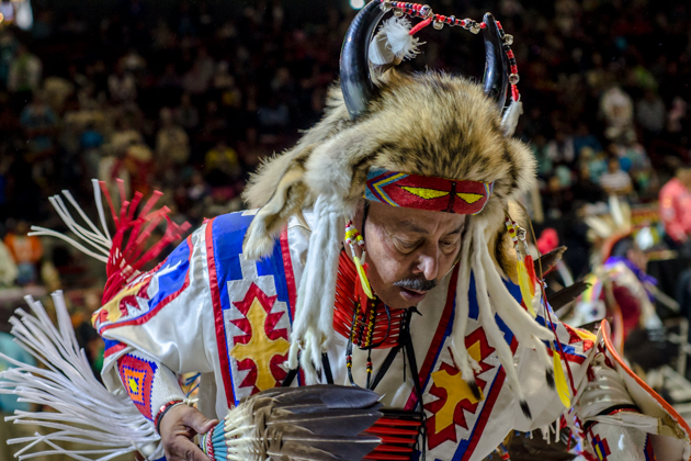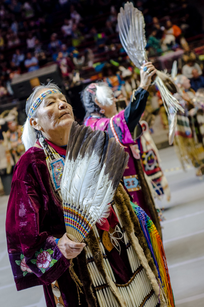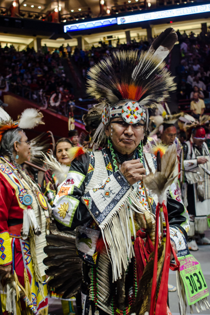 Richard Donaghey leads in hundreds of dancers during the Grand Entry Ceremony.