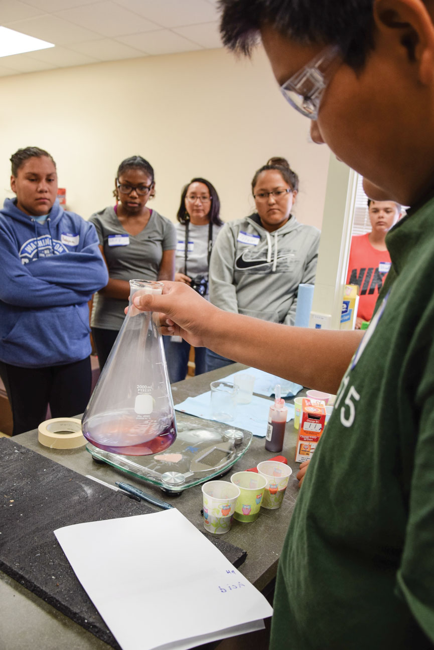 Afterwards, Camille Keith from the J&R Environmental Program gave a lecture on identifying acidic rain using dyes and a color chart. The youth group studied with an assortment of elements to determine what would be acidic.