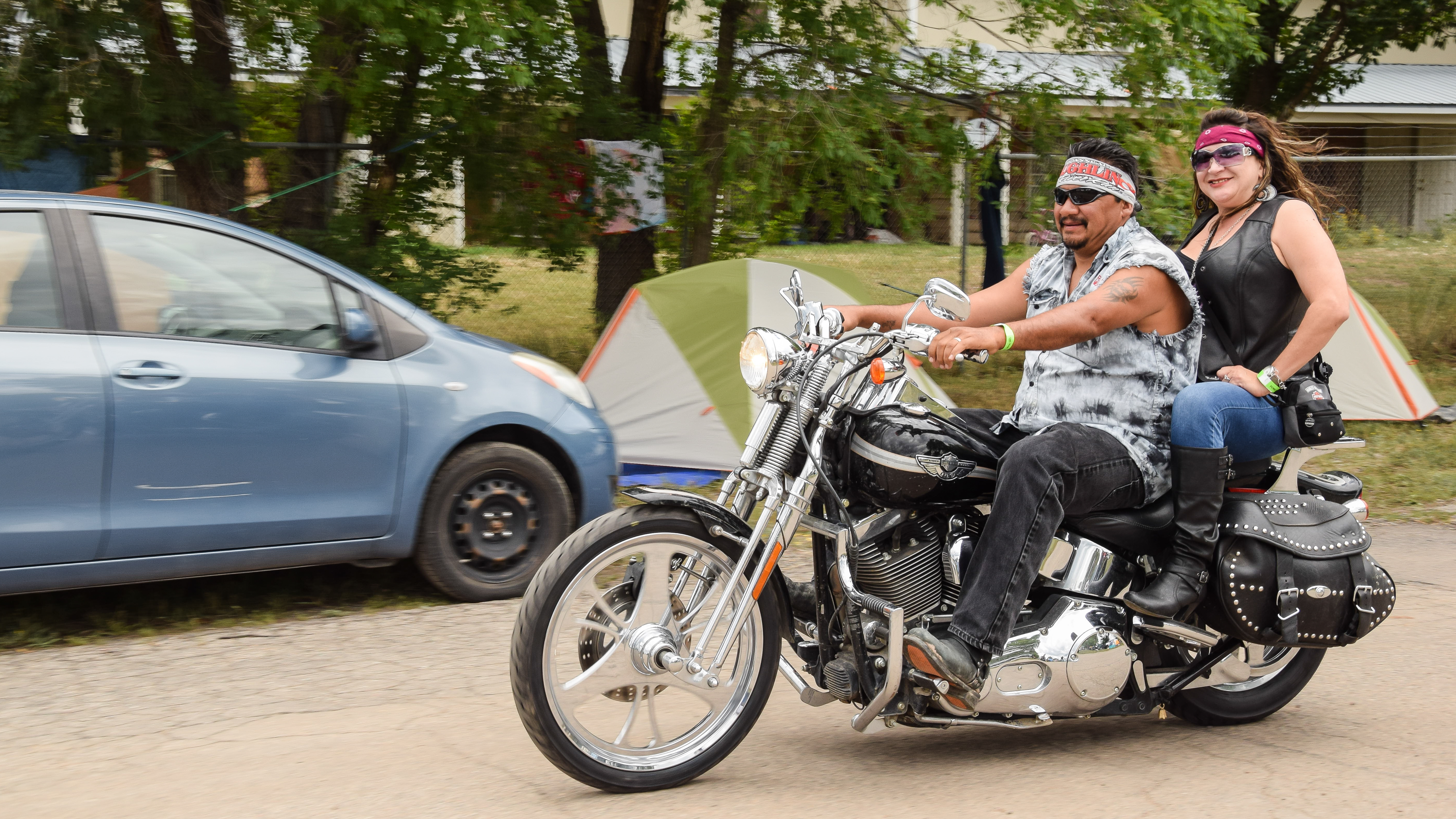 More bikers arrive at the Sky Ute Fairgrounds.