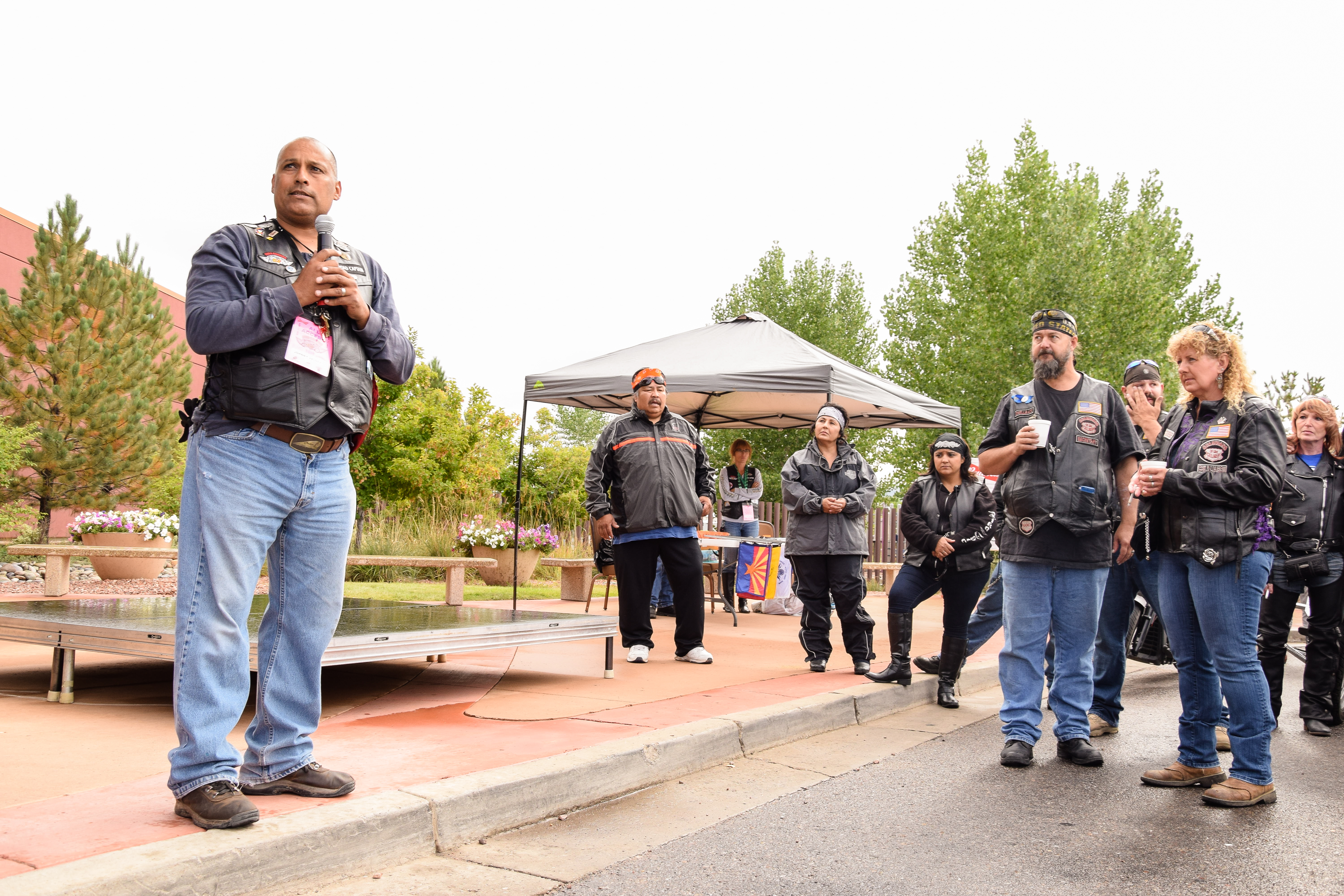 Bikers arrive at the Sky Ute Fairgrounds.