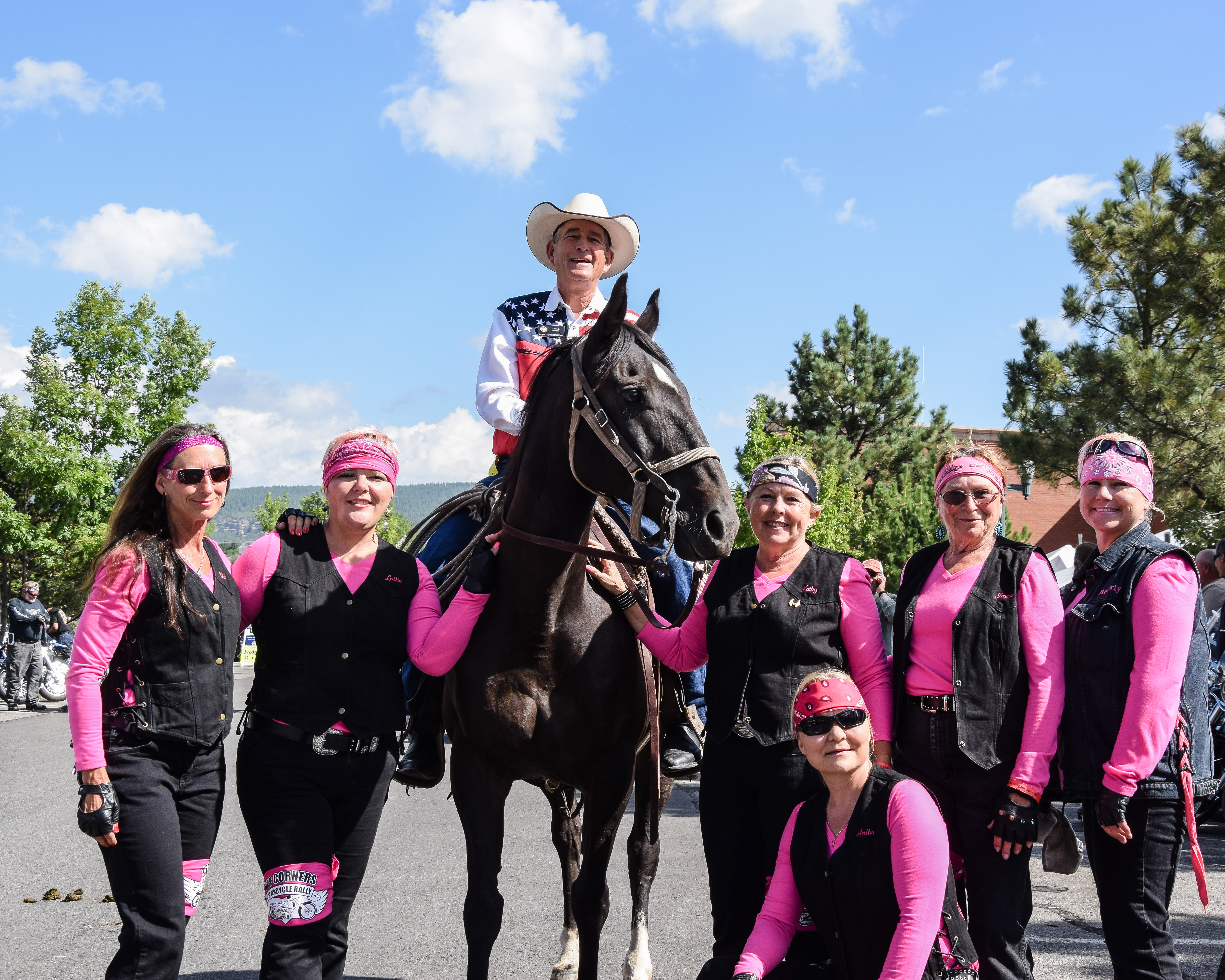 Bikers pose for a photo at the Sky Ute Fairgrounds.