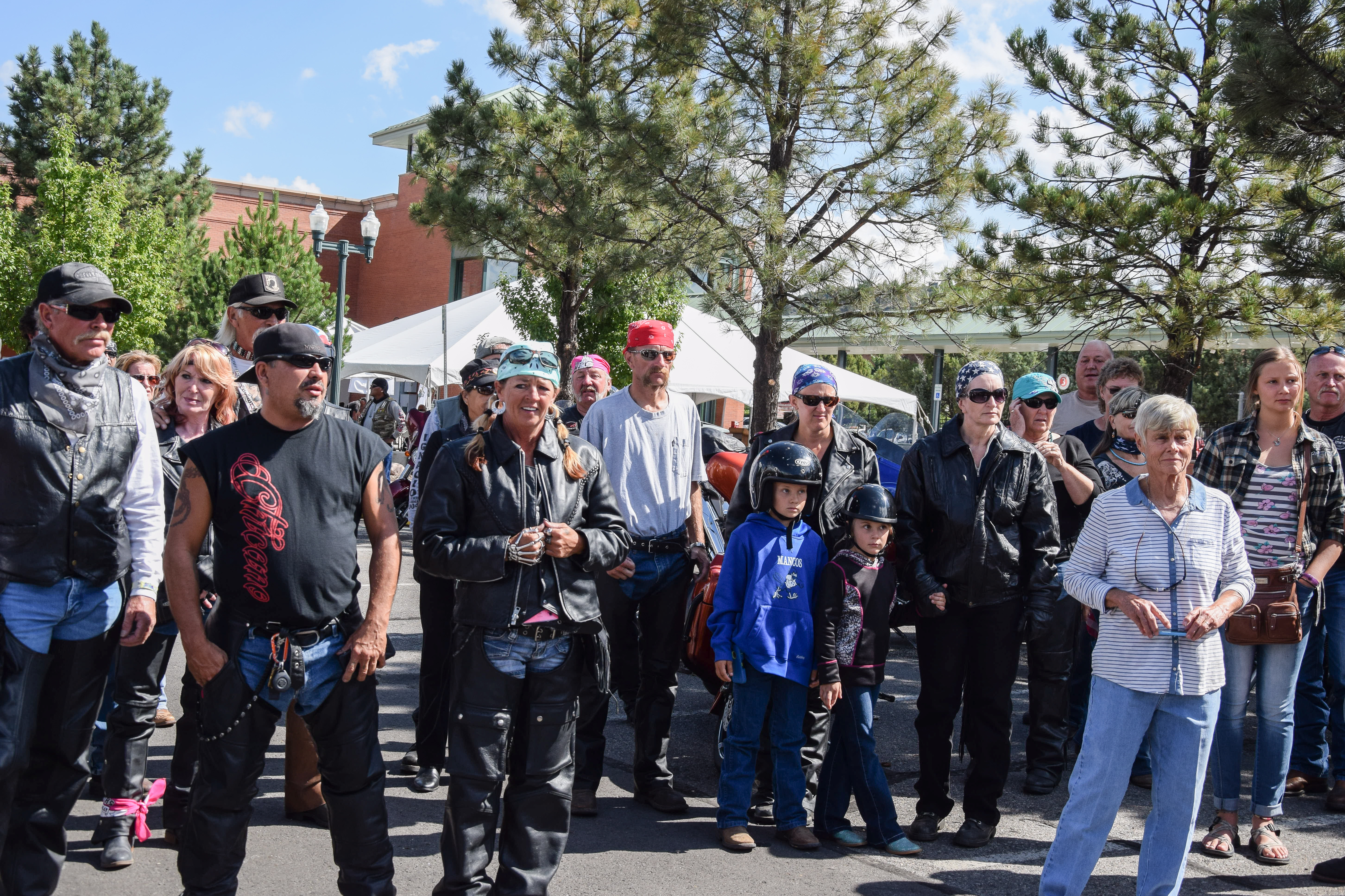 Bikers gather for an opening prayer prior to the biker parade in downtown Durango on Saturday, Sept. 3.