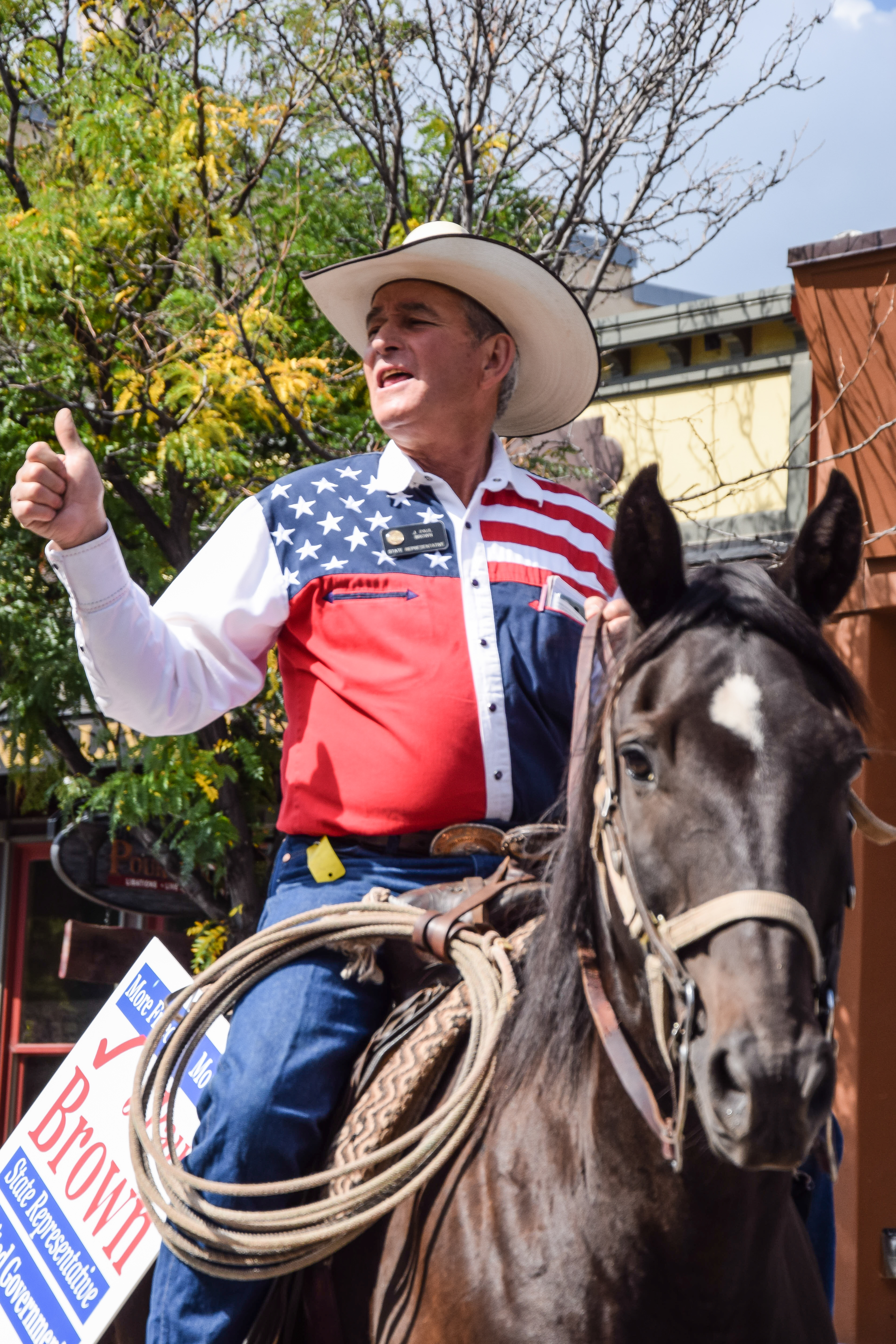 J. Paul Brown gives a thumbs up to the crowd during the biker parade.