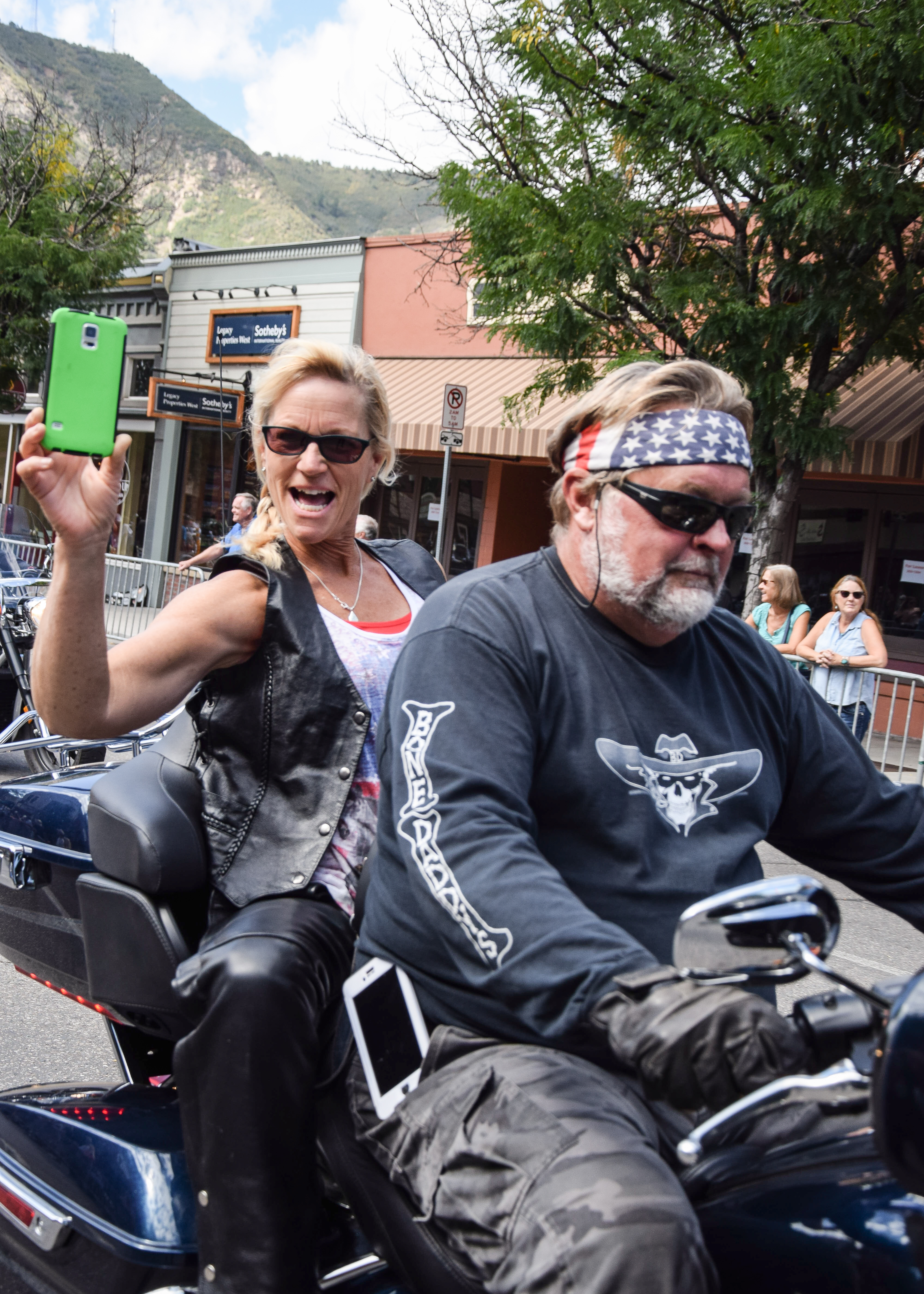 Bikers flash a smile during the Four Corners Motorcycle Rally parade on Saturday, Sept. 3.