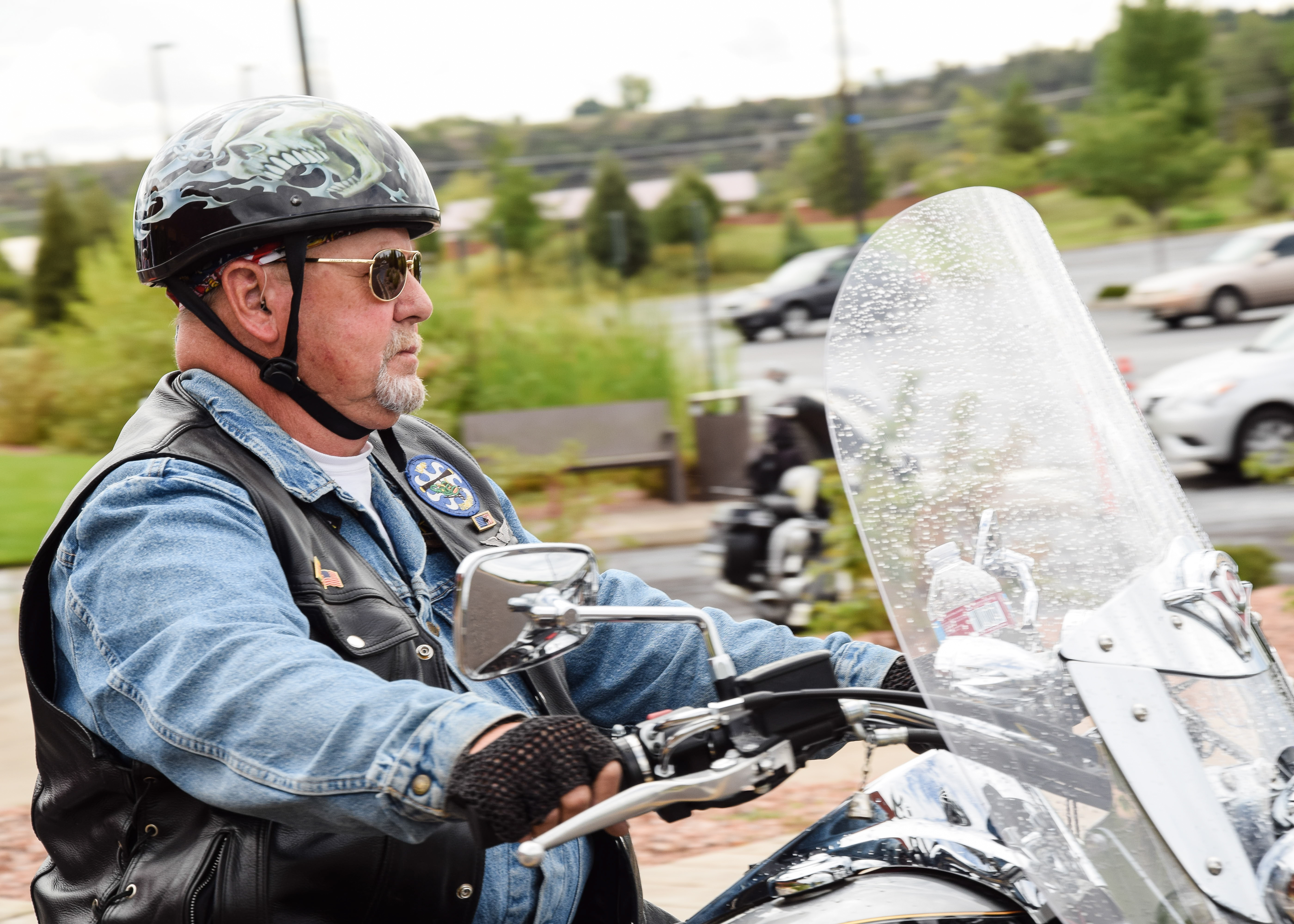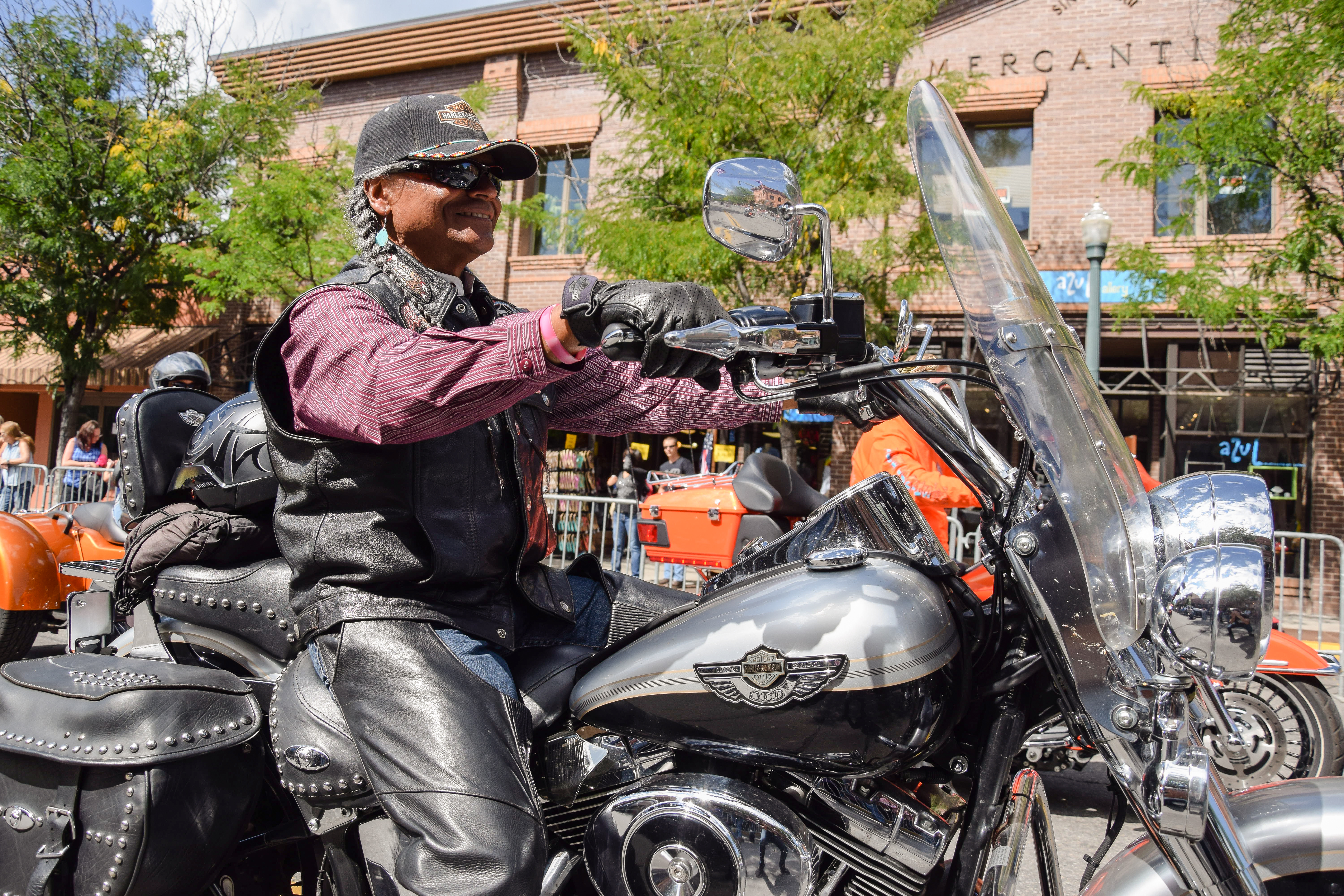 Kylee Thompson sports his biker gear during the Four Corners Motorcycle Rally parade in downtown Durango.