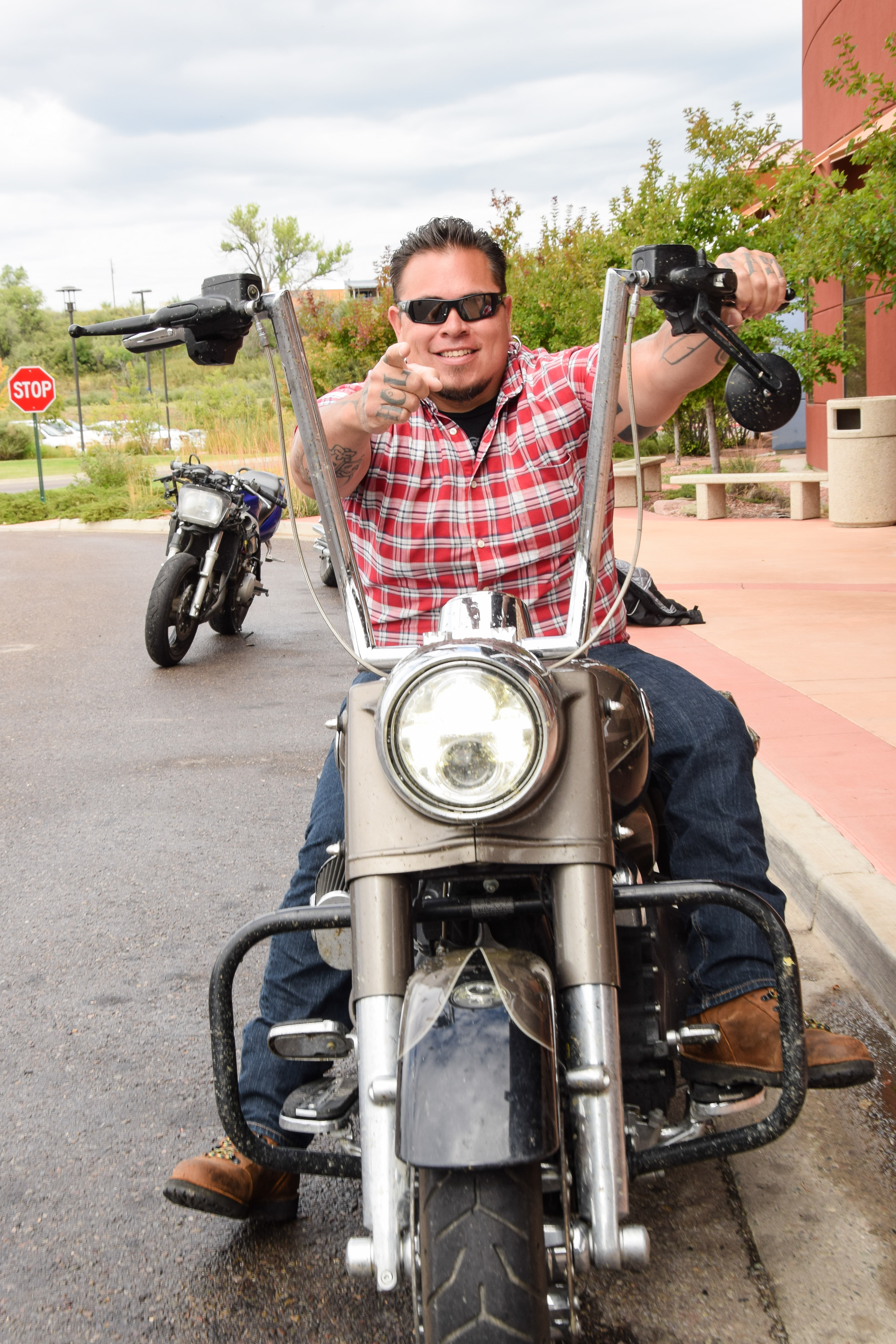 Johnny Valdez (left) enjoys his time riding in the Four Corners Motorcycle parade.