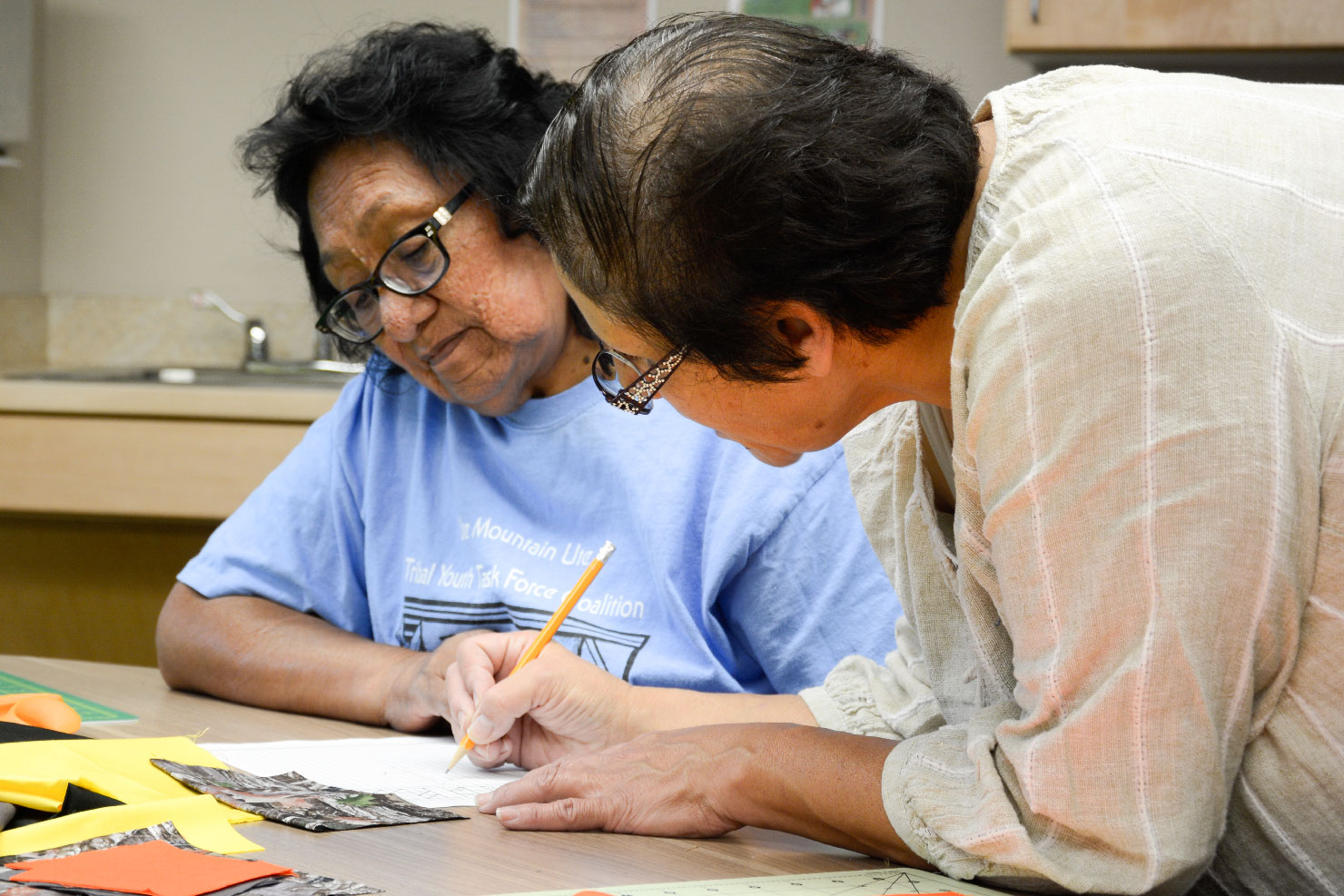 Effie Monte enjoys a day of quilting with her daughter Sherry Salazar at the Multi-Purpose Facility.
