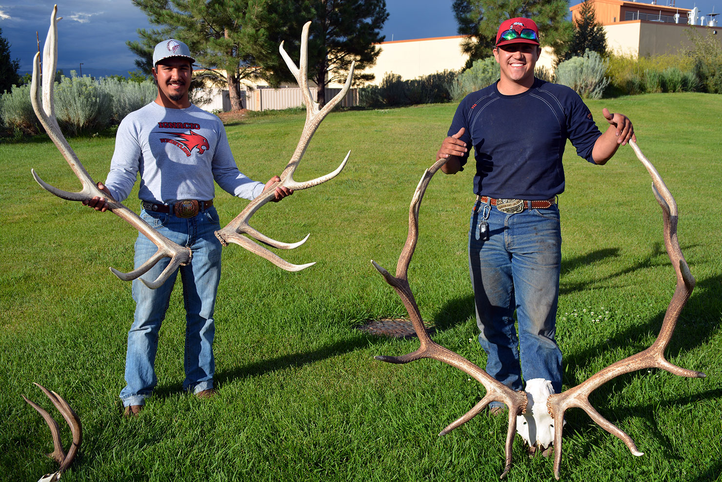 Southern Ute tribal members, and brothers, Lorenzo “Woody” and Iaasic “Ike” Pena pose with their bull elk racks and sheds, before the Membership Outreach meeting and Scoring Night. The event was sponsored by the Southern Ute Wildlife Resource Management Division and held at the Sky Ute Casino Resort’s Event Center on Thursday, Aug. 24. Wildlife Division Head, Steve Whiteman headed the evening’s event, with a presentation of the Wildlife Division’s activities and services provided to the tribal membership.