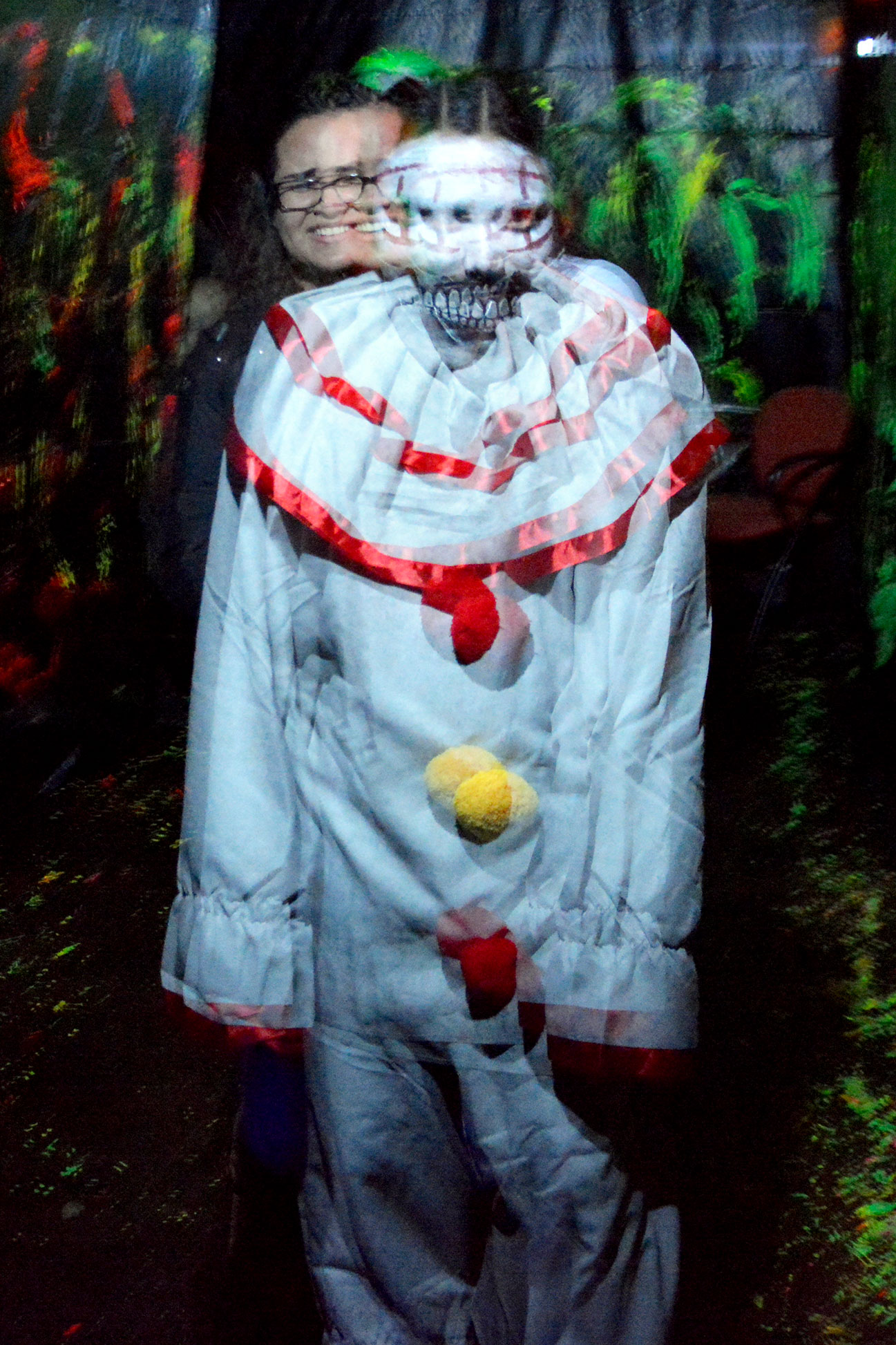 Who’s scaring who? “Twisty” the clown traversed the haunted hallways as a patron of the haunted house.