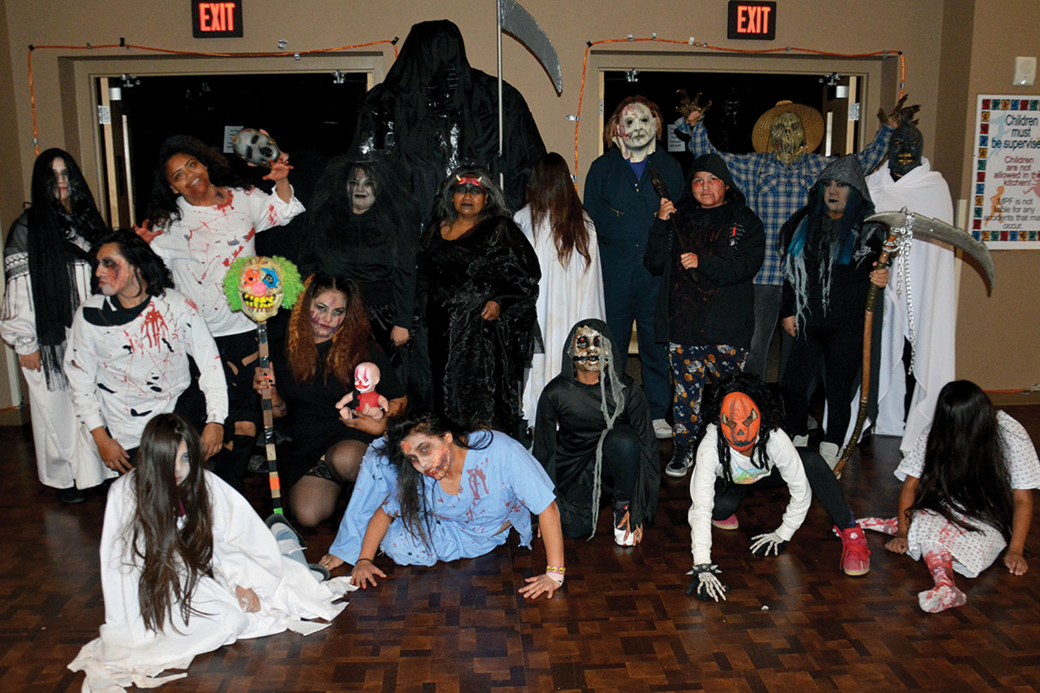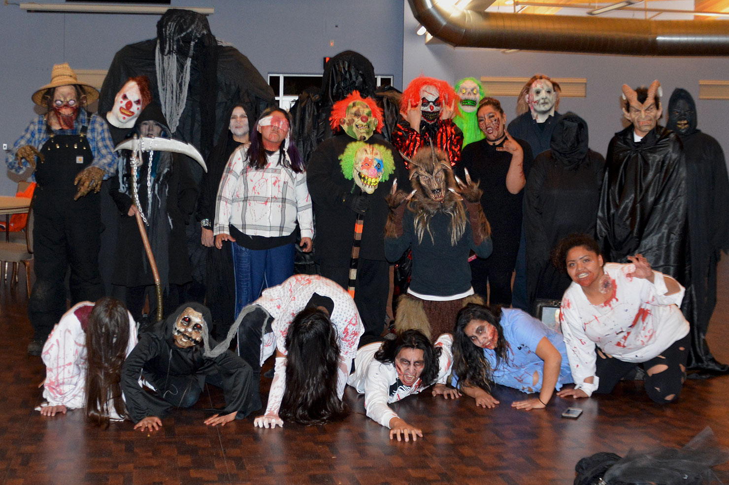 Smile! Or not … the end of the night’s scares gathered the group of haunted actors at the Southern Ute Multi-purpose’s haunted house on Saturday, Oct 28.