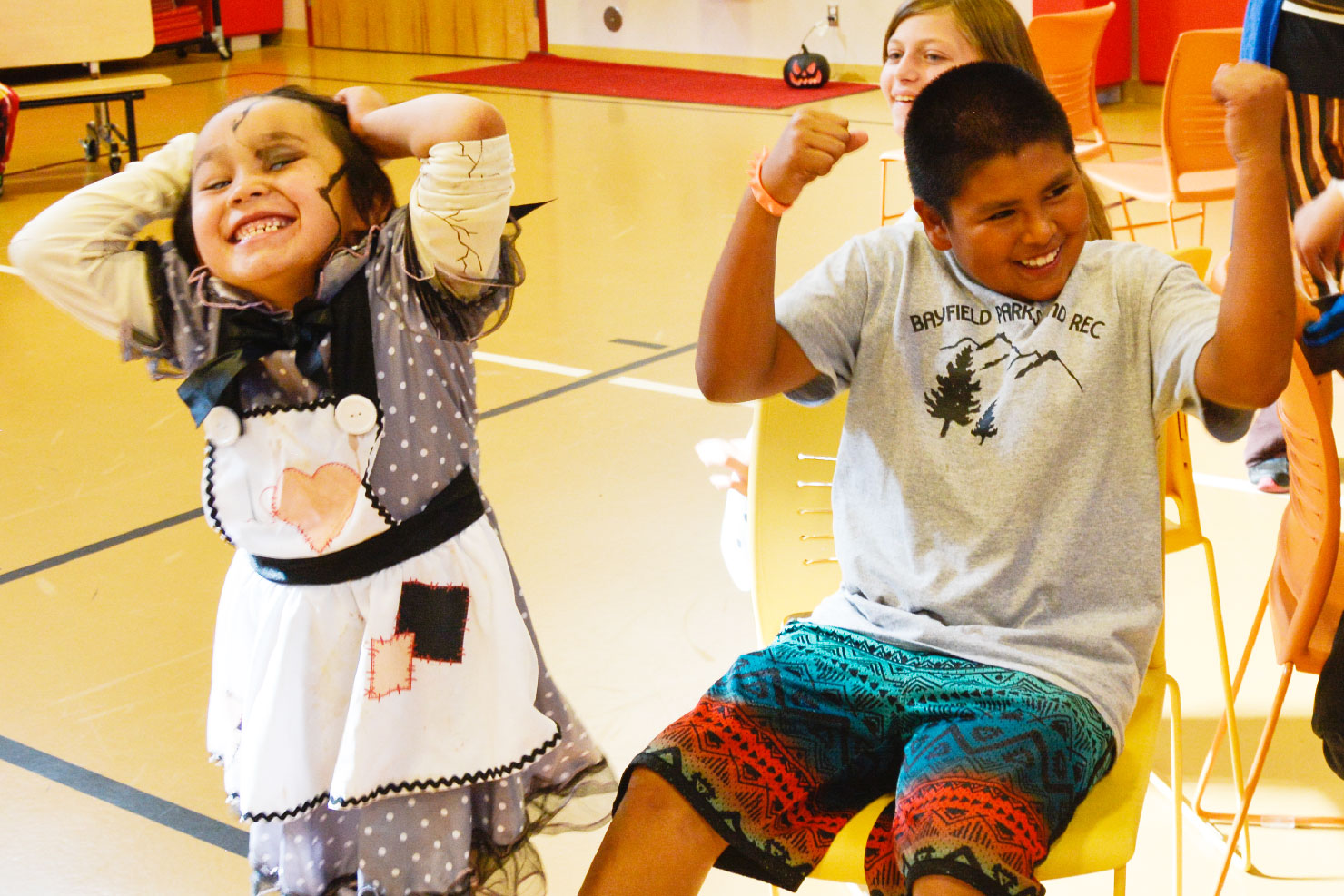 Jada Cloud loses her spot to Ambrose Valdez while competing in musical chairs at the Ignacio Elementary Carnival Saturday Nov. 4.
