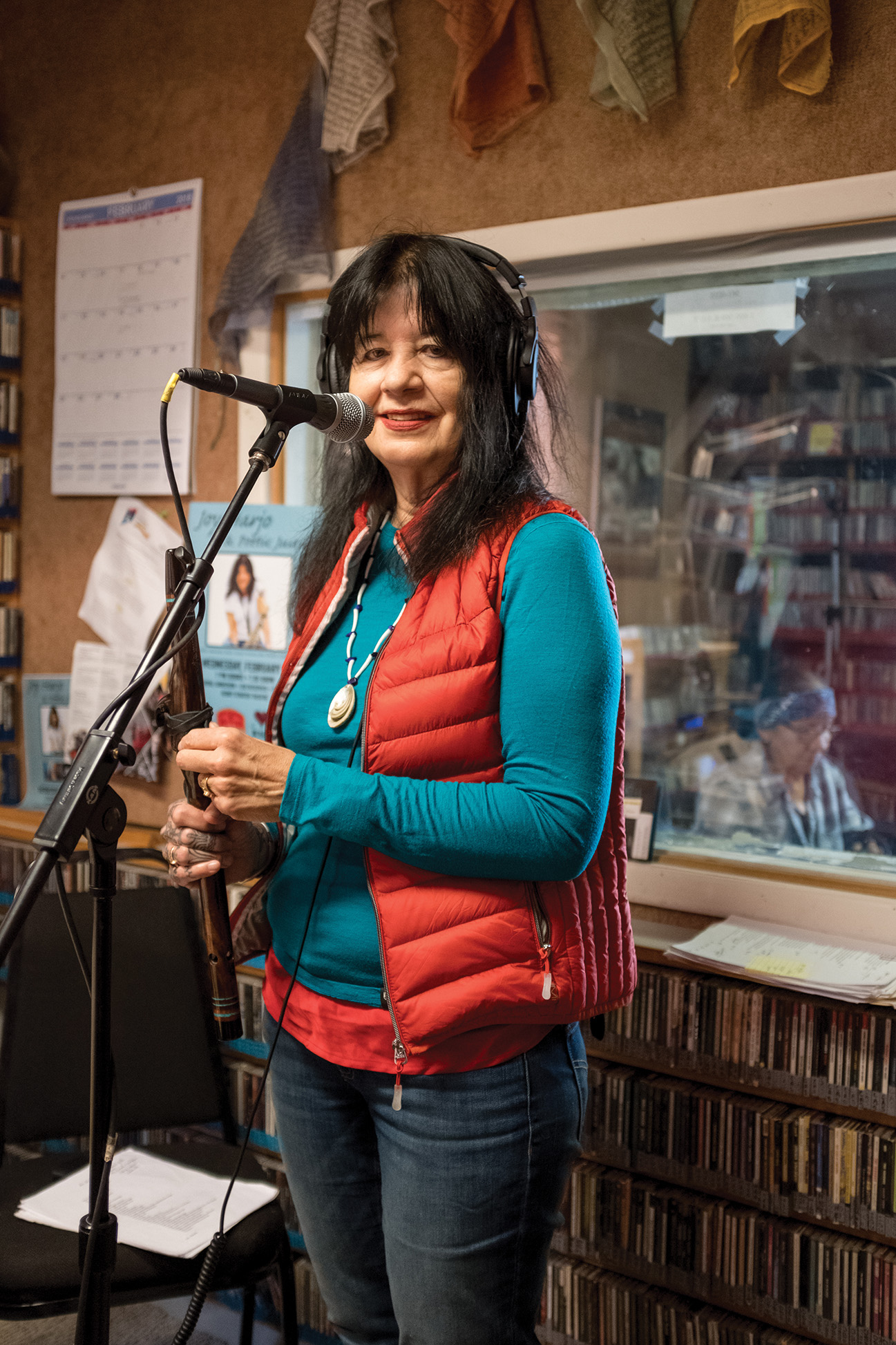 Native American poet, musician, and author, Joy Harjo performs live during an interview, which was broadcast over both of KSUT's signals, Wednesday, Feb. 14. Harjo hails