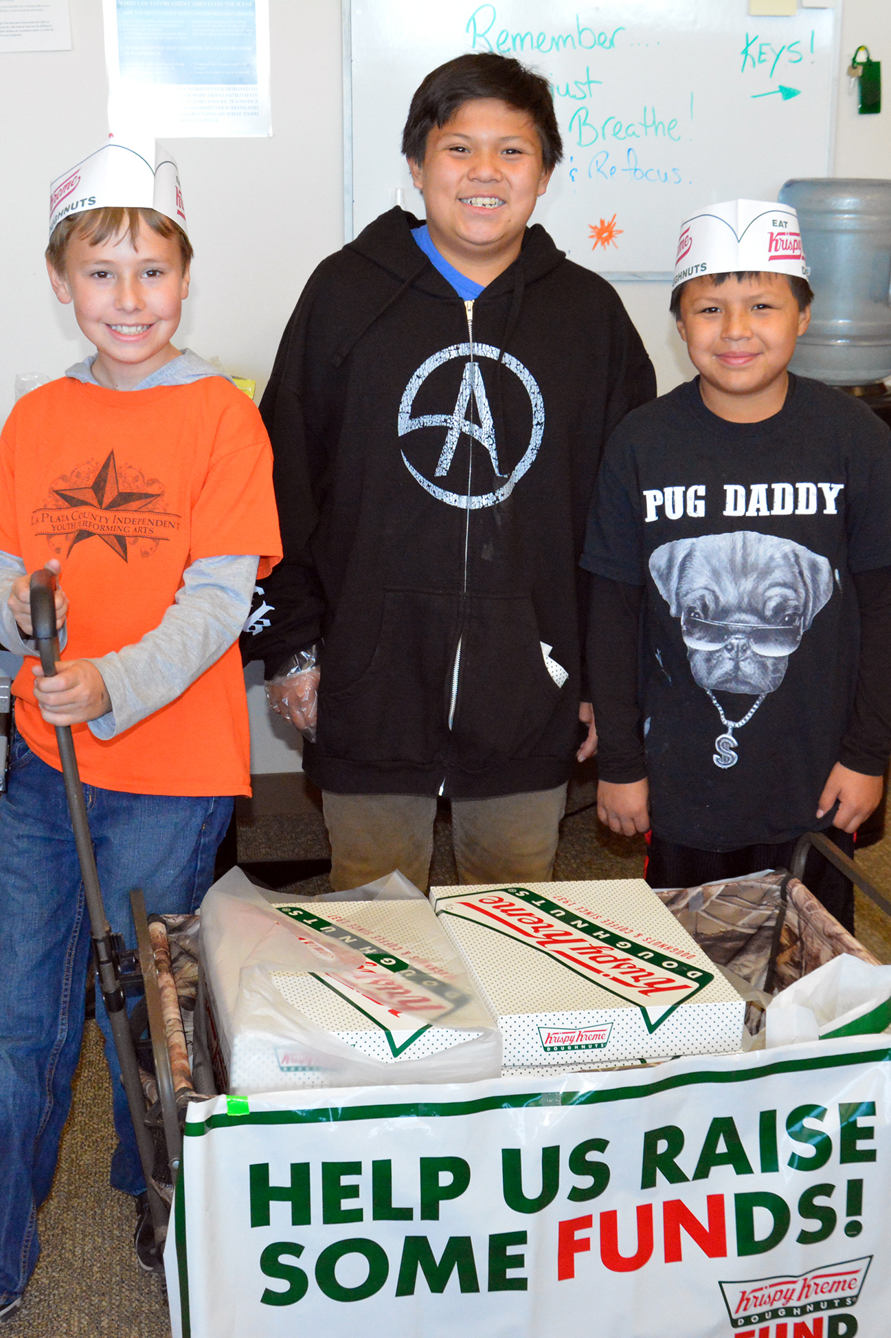 Lane Hunter, along with brothers, Nate and Dewayne Hendren made the rounds on the Southern Ute Indian Tribe’s campus Friday, Feb. 2, selling Krispy Kreme donuts, assorted or original. The student’s fundraising efforts will help pay for a dance choreographer, Gabe Garcia, and for future dance competitions they will be competing in. The boys dance with the La Plata County Independent Youth Performing Arts, and they will be practicing with Garcia, preparing for the dance competitions at the Manzano High School in Albuquerque, N.M. on March 24. Check for later updates in The Southern Ute Drum.