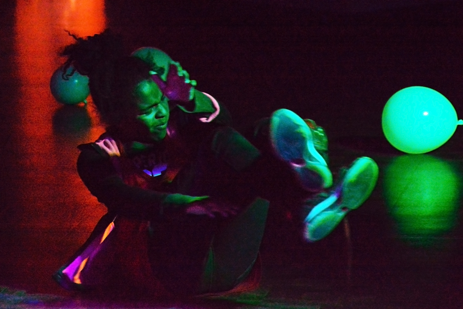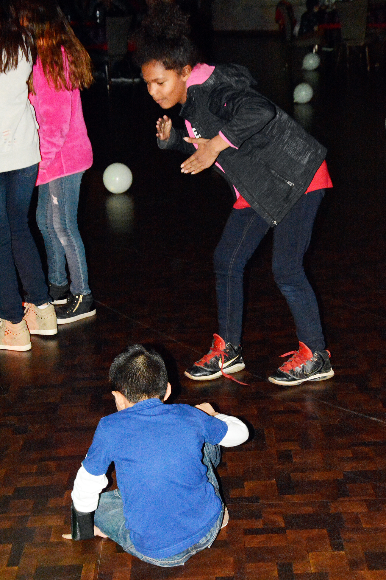 Nanas Fuller gets down with the "robot," while Stephen Romero spins on the dance floor.