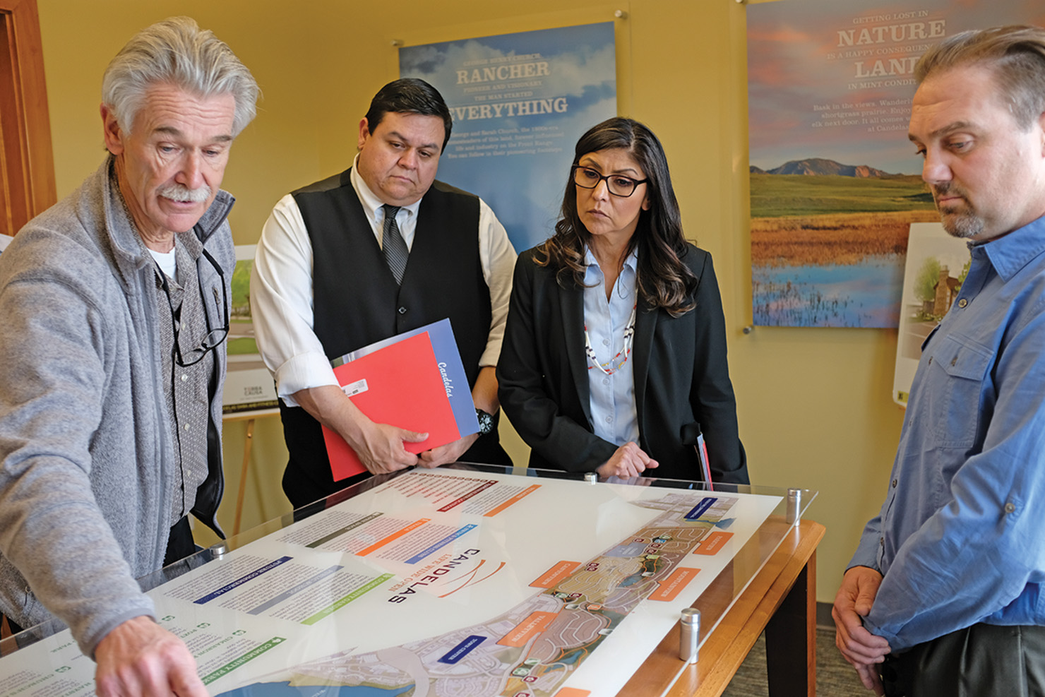 Members of the Southern Ute Tribal Council including: Chairman Christine Sage, Councilman Adam Red, Councilwoman Lorelei Cloud and Councilman Cedric Chavez toured the newly established community on Wednesday, March 21. The educational tour was organized by Growth Fund Executives Patrick Vaughn and Brian Mulvany. Candelas is being developed by Growth Fund Properties in collaboration with Terra Causa Capitol of Denver.