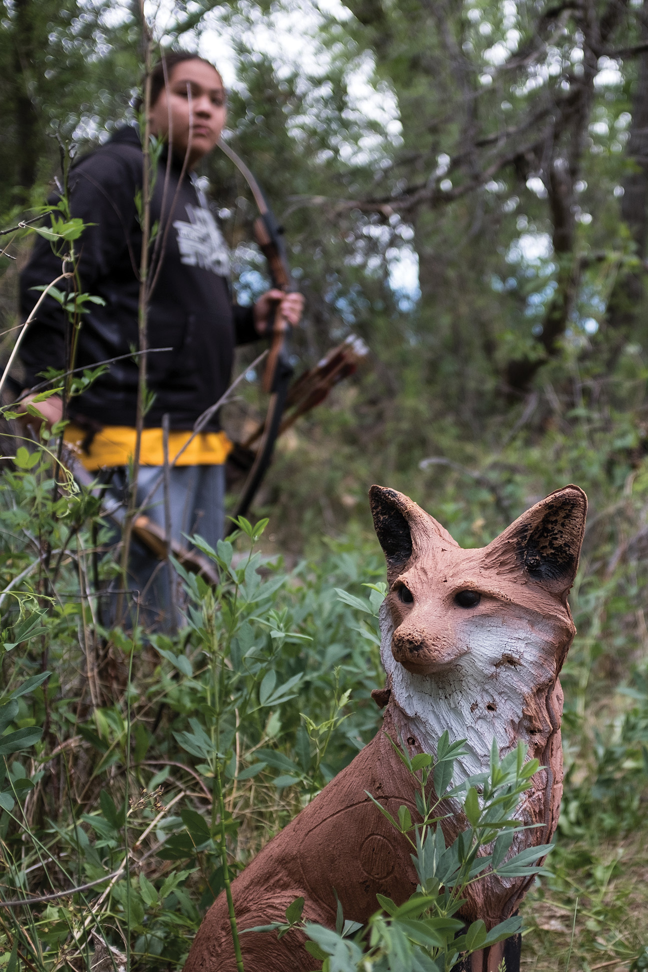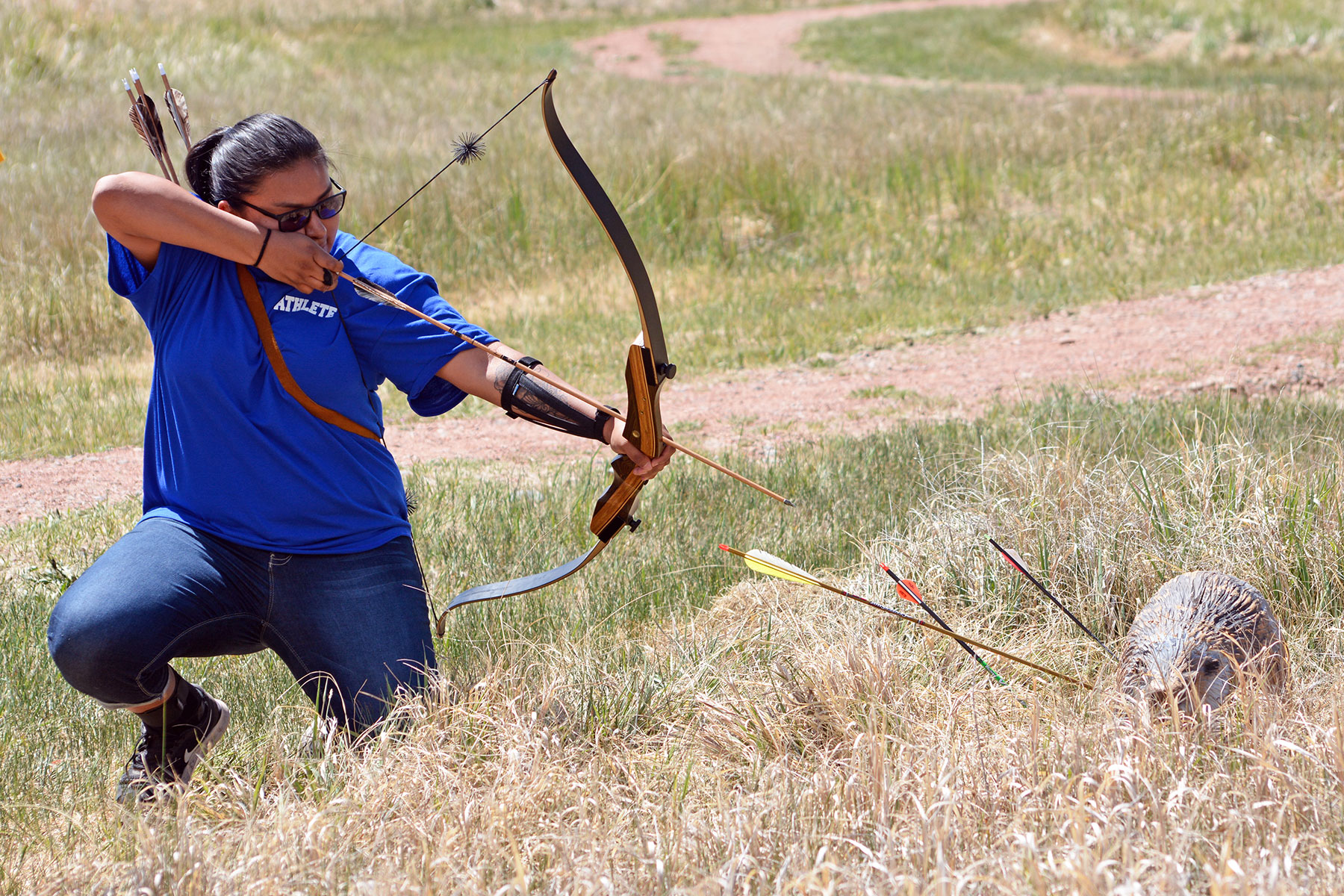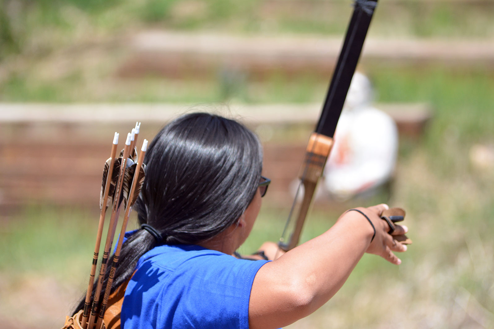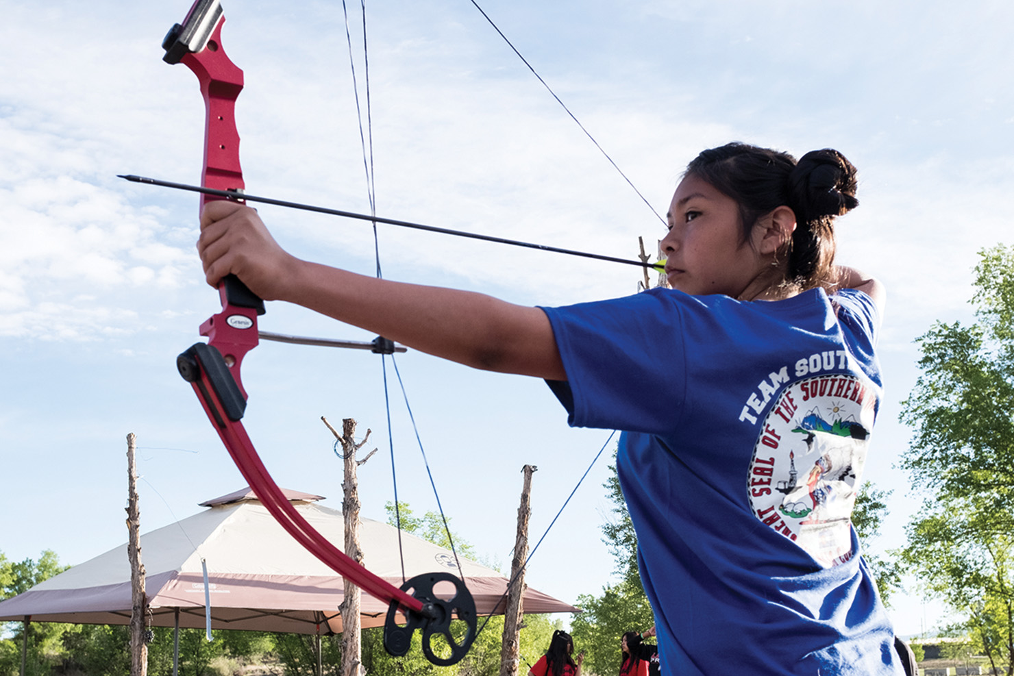 Southern Ute archer, Keona Whitey nocks her arrow at Scott’s Pond, before taking aim at Sasquatch.