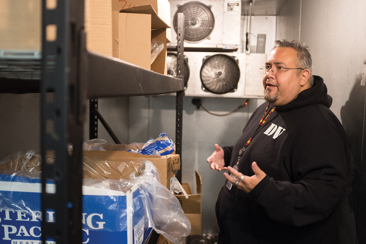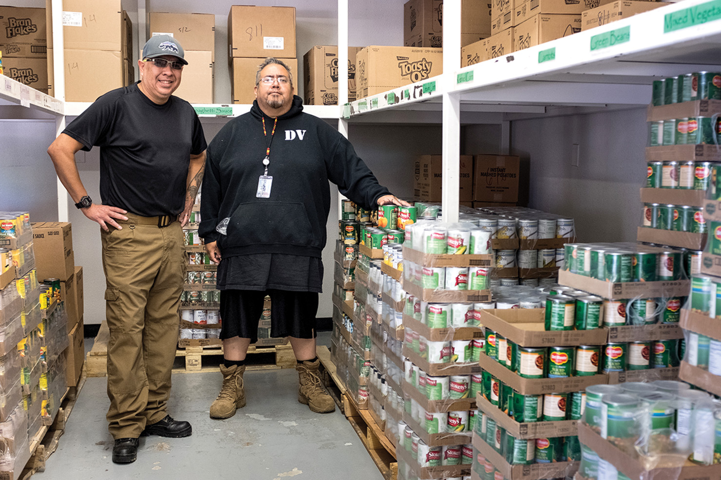 “It’s completely different than it used to be,” Angelo Valdez said. Gone are the days of the black and white labels and generic commodities. “We get produce delivered every two weeks, so its fresh. That’s my job, to make sure everything is organized, and that there is no expired food.” Damaged goods are separated, and donated to regional food banks. Any cardboard byproduct is collected for the Tribe’s recycling program. Valdez works as the stock clerk for the food distribution warehouse.