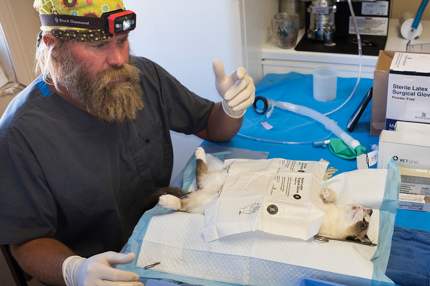 Patrick Goddard of Rainbow Springs Veterinary performs surgery on a cat during a one-day clinic in Ignacio, Colo. funded through the non-profit C.A.R.E., Wednesday, Sept. 26.