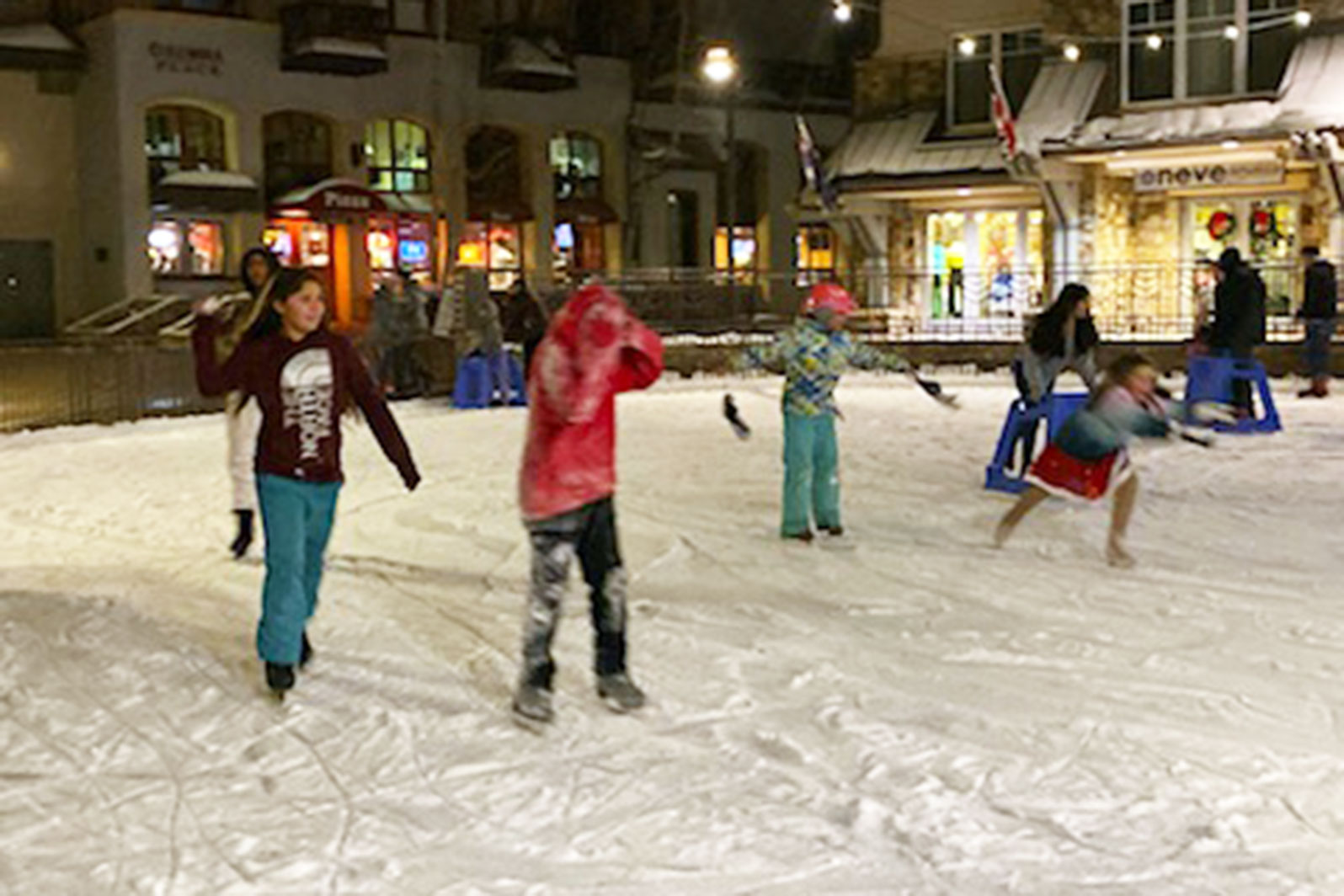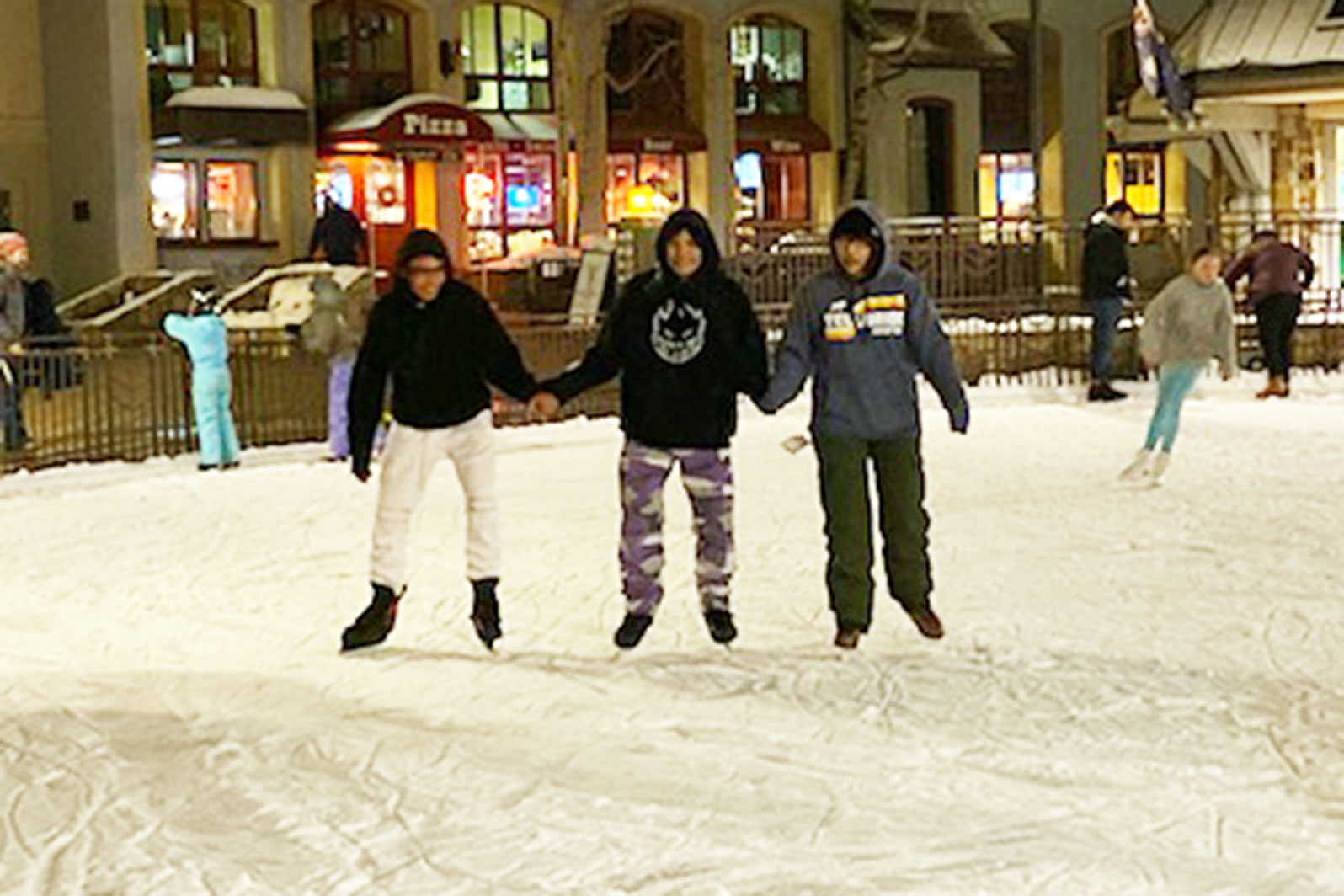Field trip participants: Sarafina Chackee, Nate Hendren and Cyrus Naranjo, ice skate hand in hand together before going inside the mountain lodge to drink hot chocolate and play games.